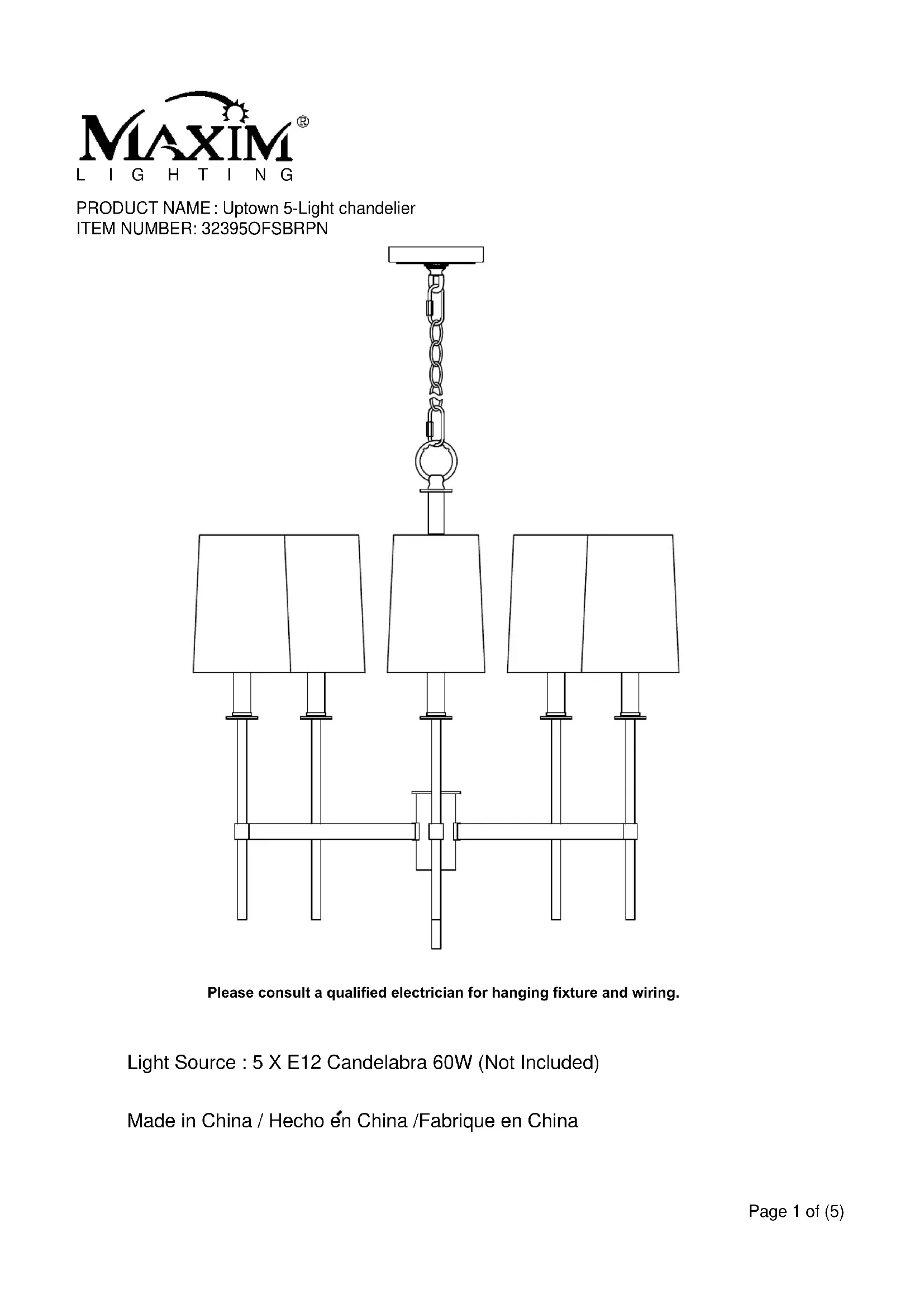 Uptown 32395OFSBRPN - Lampe Maxim - Notice d'utilisation et mode d'emploi gratuit