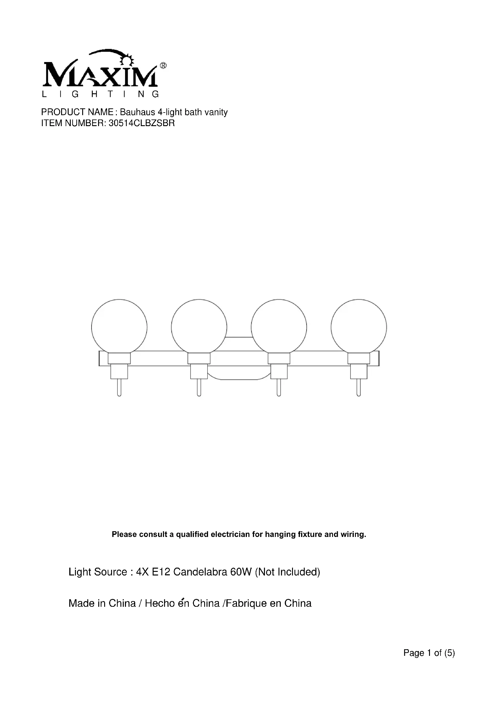 Bauhaus 30514CLBZSBR - Éclairage Maxim - Notice d'utilisation et mode d'emploi gratuit