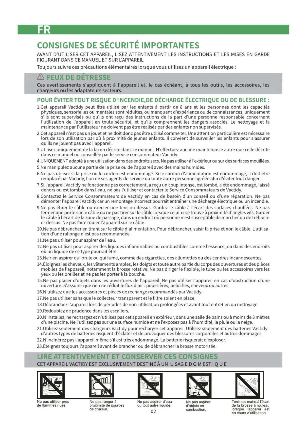 | Informations générales | Poids léger de 2,5 kg, design ergonomique, garantie de 2 ans, compatible avec les accessoires Vactidy. |