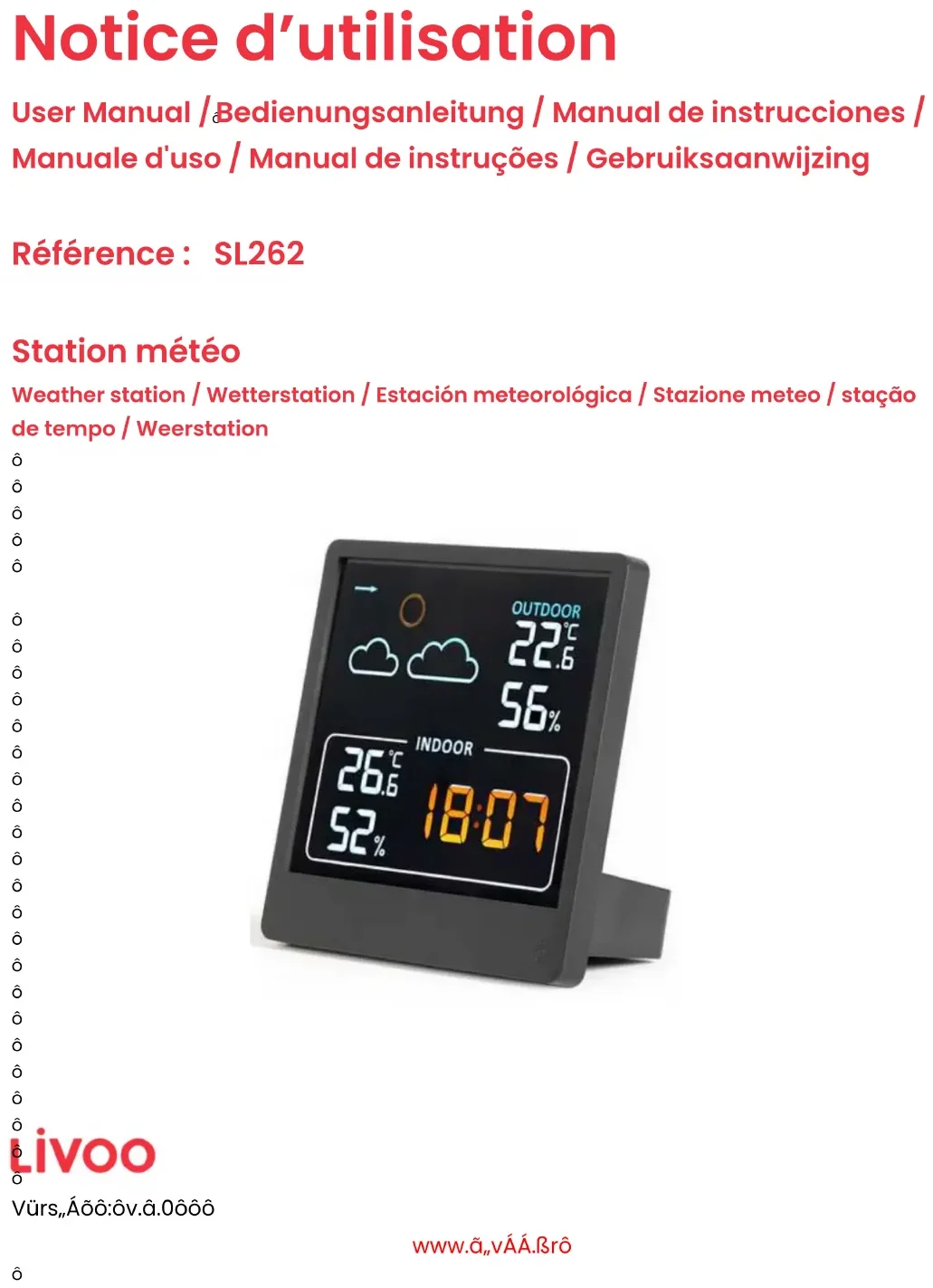 SL262 - Station Météo LIVOO - Notice d'utilisation et mode d'emploi gratuit