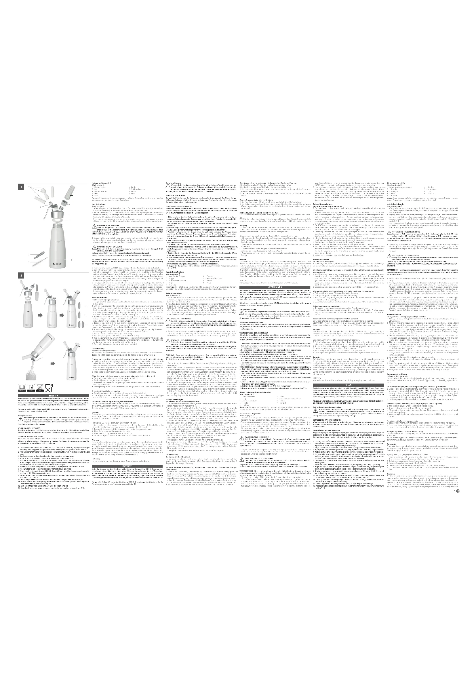 N’utilisez jamais le fouetteur de crème avec des ingrédients chauds ou pour des sauces chaudes. Ne chauffez jamais le fouetteur de crème au bain-marie ou par tout autre moyen de chauffage. La chaleur augmentera dangereusement la pression dans le fouetteur de crème -risque d’explosion.