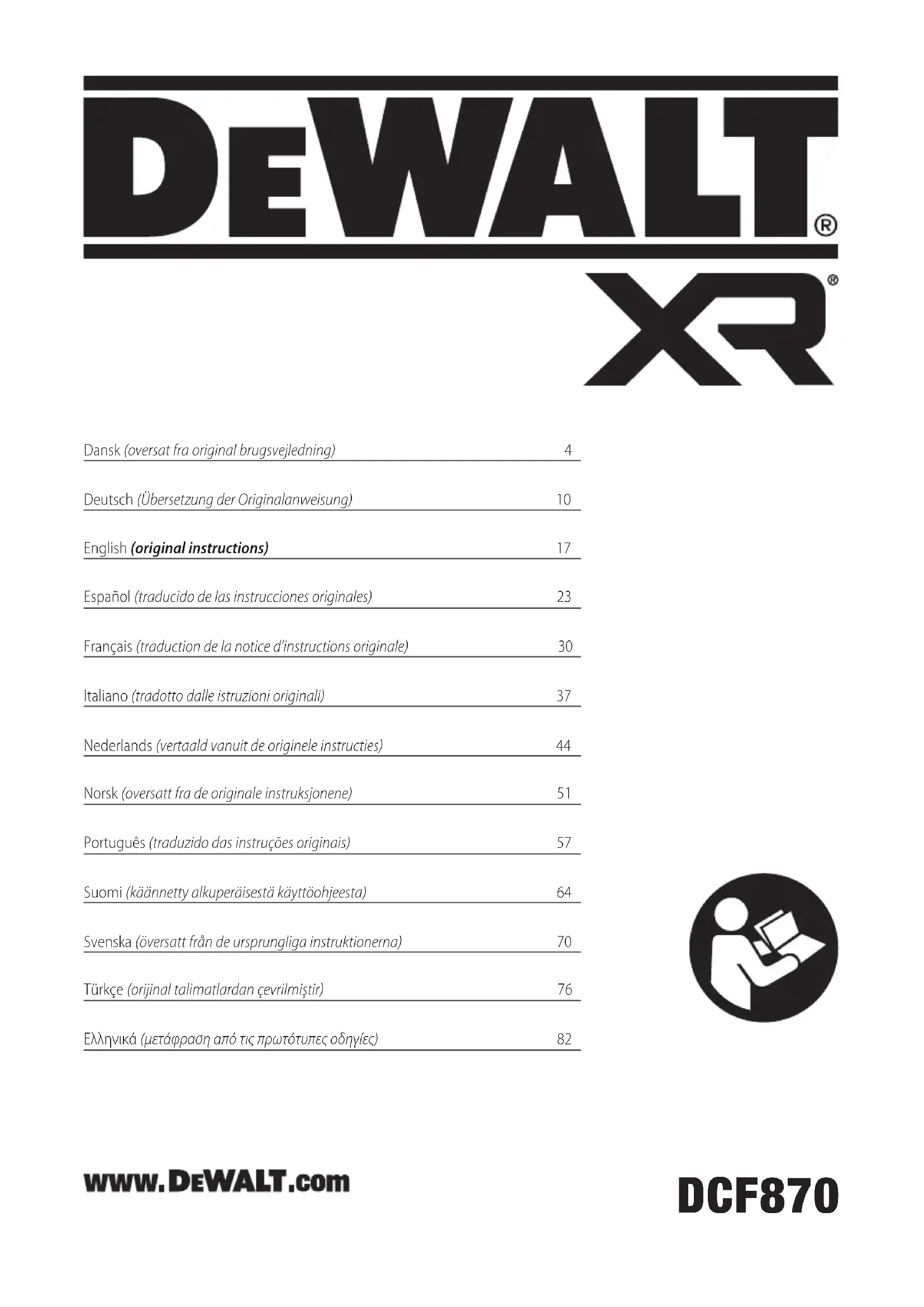 Retrouvez gratuitement la notice de l'appareil DCF870 DEWALT au format PDF.