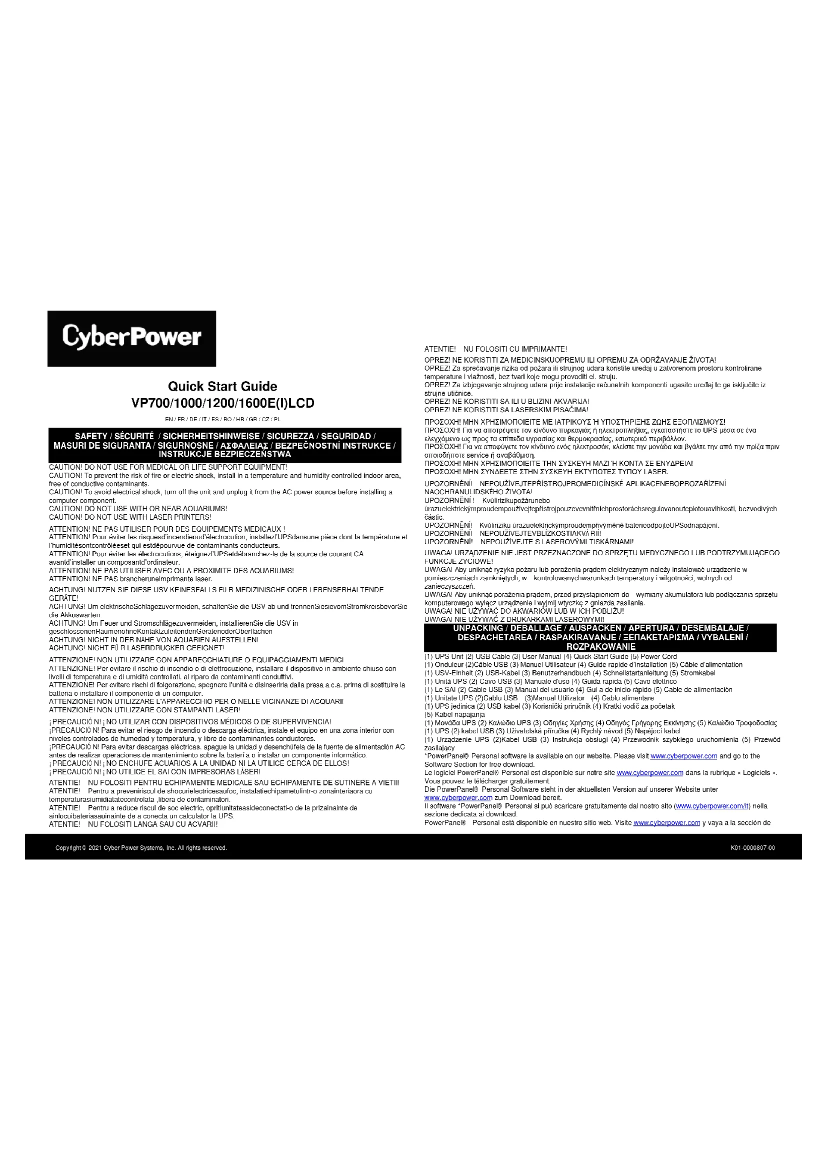 Retrouvez gratuitement la notice de l'appareil VP700EILCD CyberPower au format PDF.