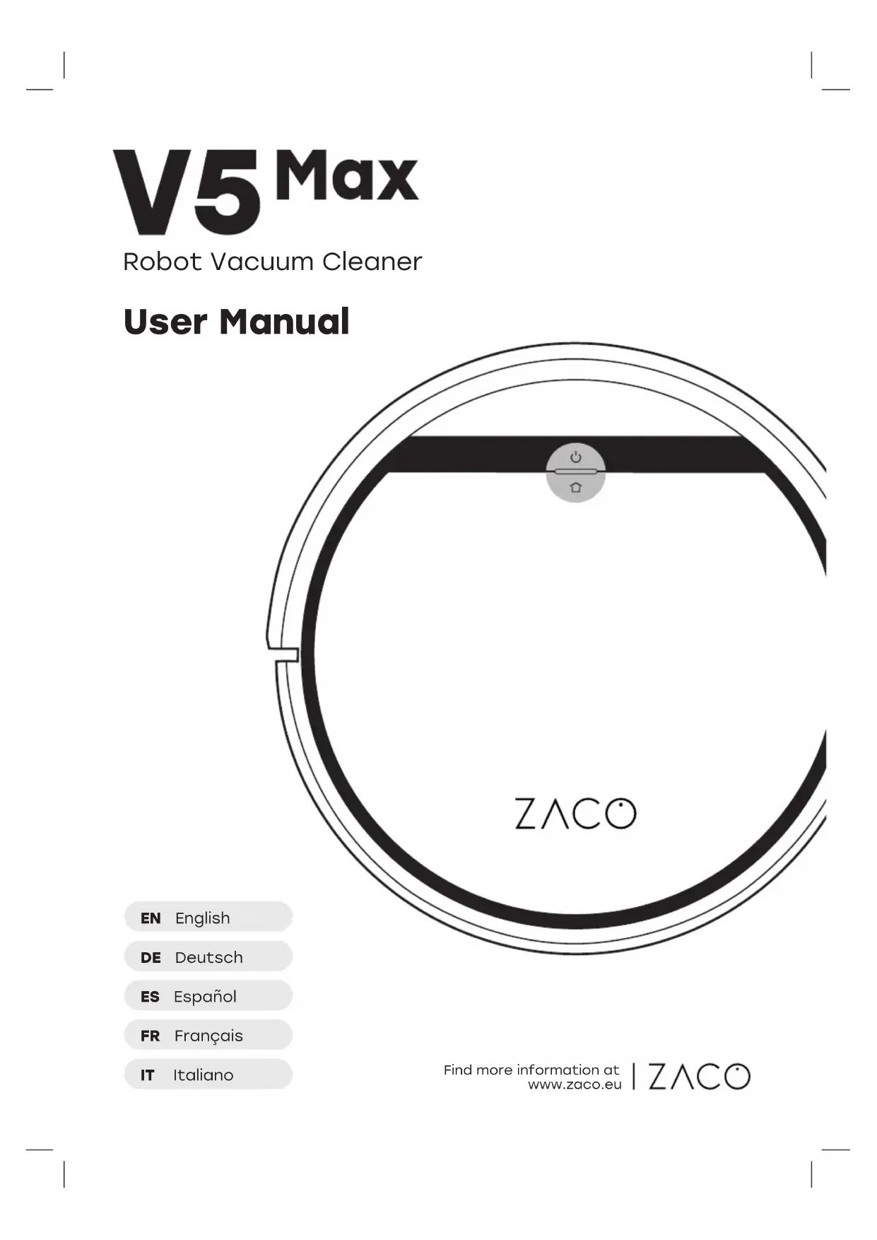 V5 Max - Aspirateur robot ZACO - Notice d'utilisation et mode d'emploi gratuit