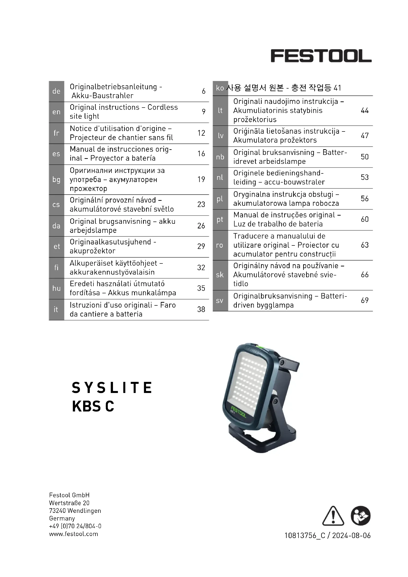 SYSLITE KBS C - Lampe FESTOOL - Notice d'utilisation et mode d'emploi gratuit