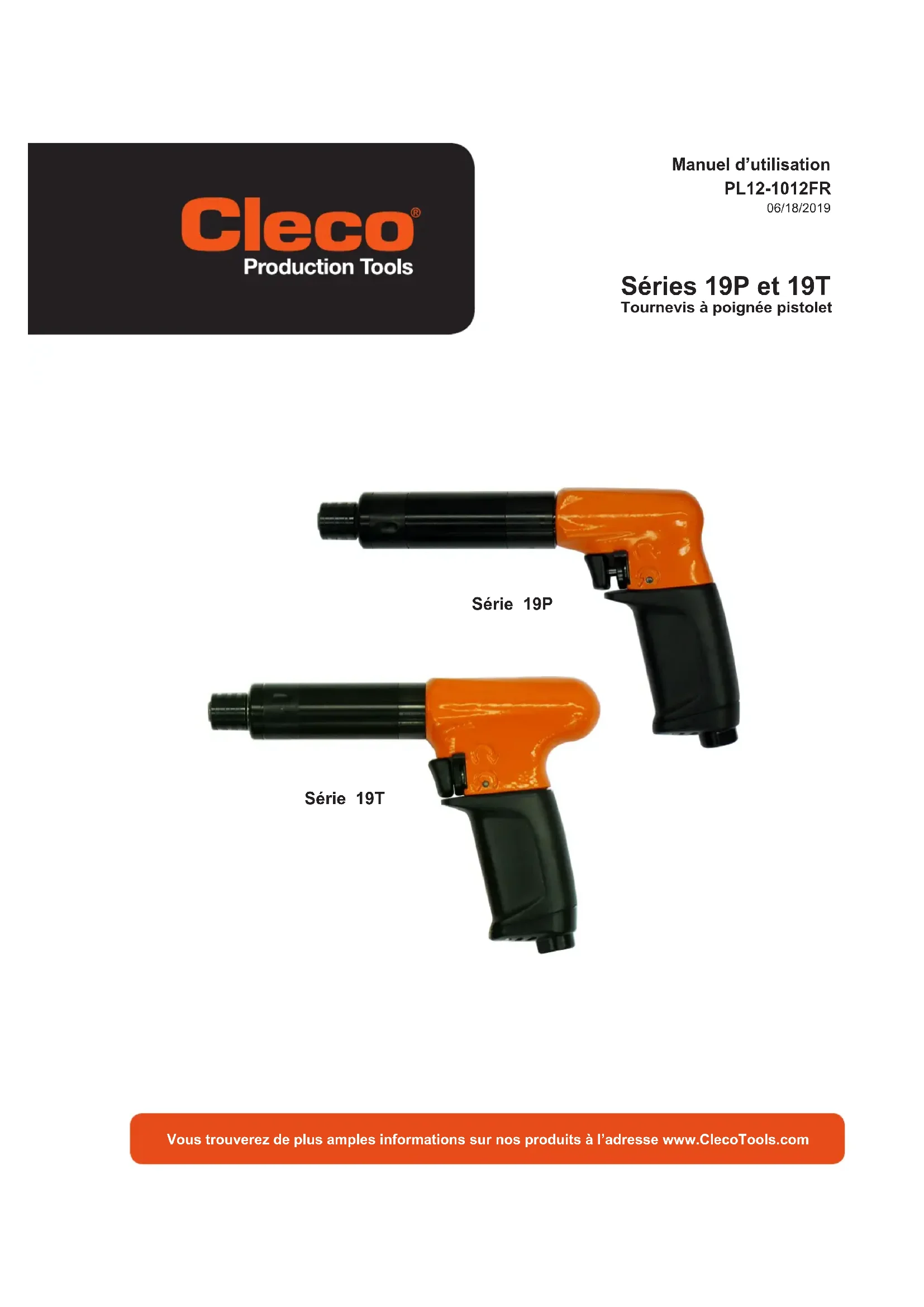 For additional product information visit our website at http://www.ClecoTools.com Manuel d’utilisation PL12-1012FR 06/18/2019 Séries 19P et 19T Tournevis à poignée pistolet Vous trouverez de plus amples informations sur nos produits à l’adresse www.ClecoTools.com Série 19P Série 19TPage 2 PL12-1012FR 06/2019 Cleco