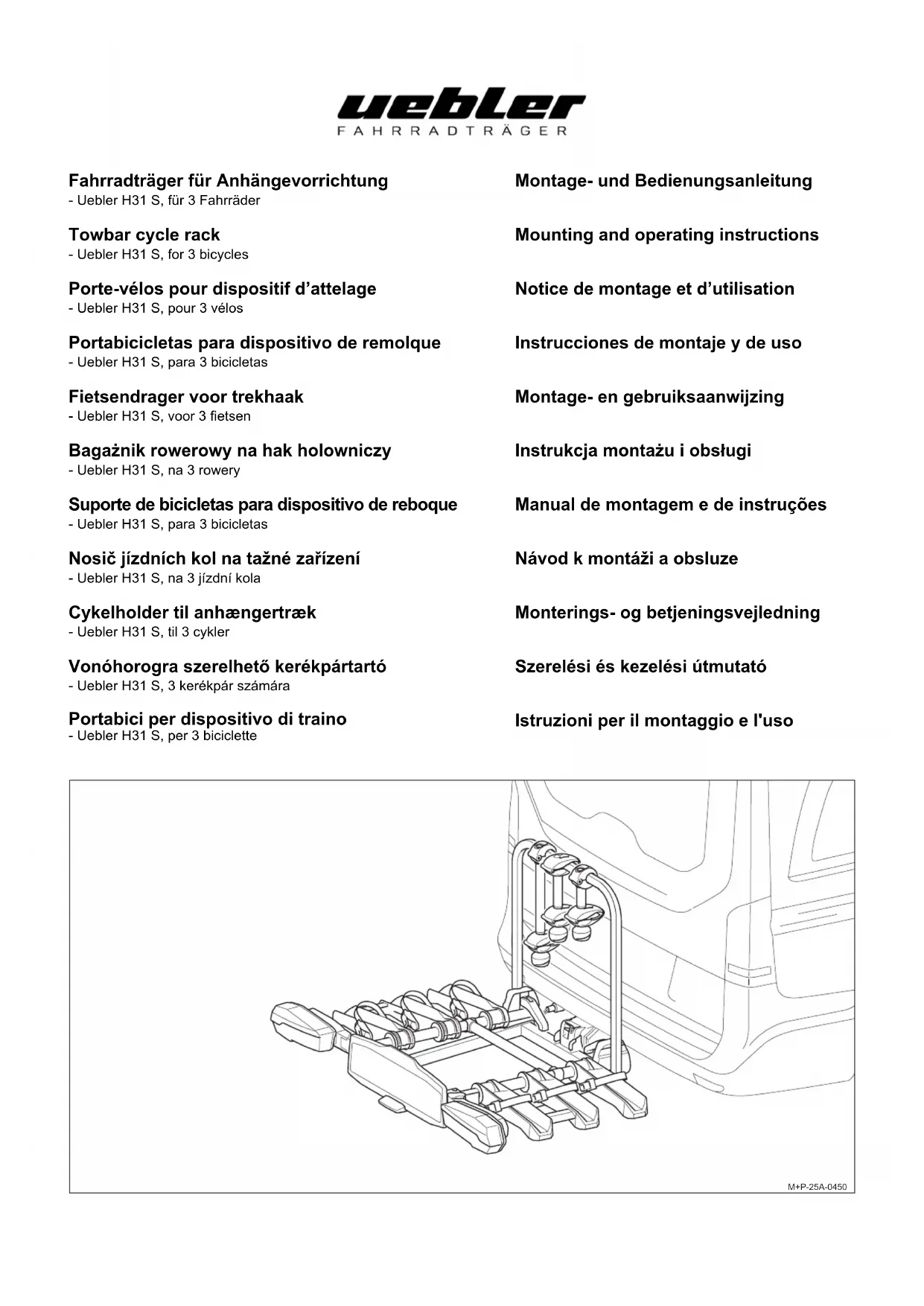 H31 S - Porte-vélo Uebler - Notice d'utilisation et mode d'emploi gratuit