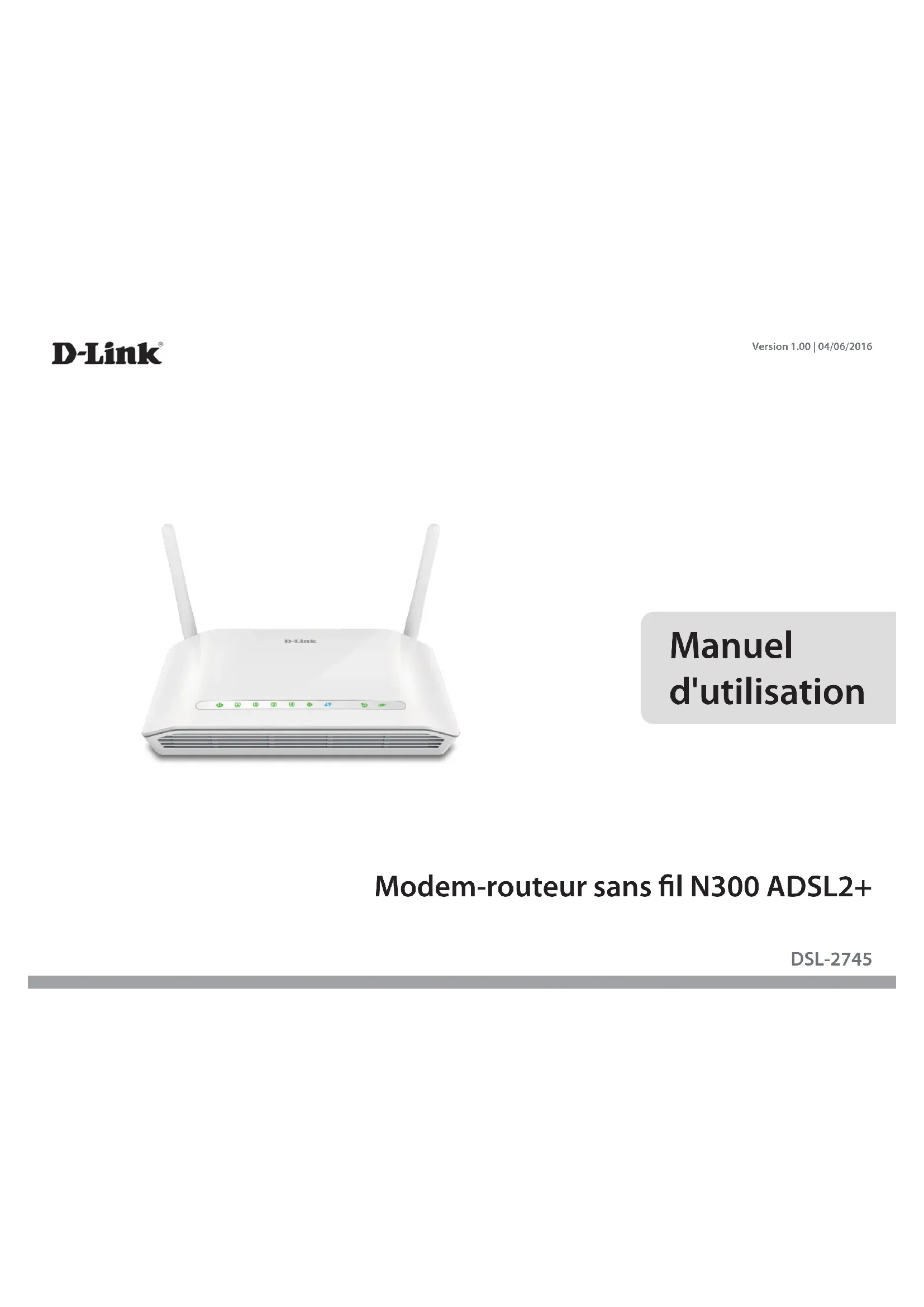 Modem-routeur sans l N300 ADSL2+ Manuel d'utilisation DSL-2745 Version 1.00 | 04/06/2016iD-Link DSL-2745 Modem-routeur sans l N300 ADSL2+ Manuel d'utilisation D-Link se réserve le droit de réviser ce document et d’en modier le contenu sans aucune obligation de préavis. Révisions du manuel Révision Date Description