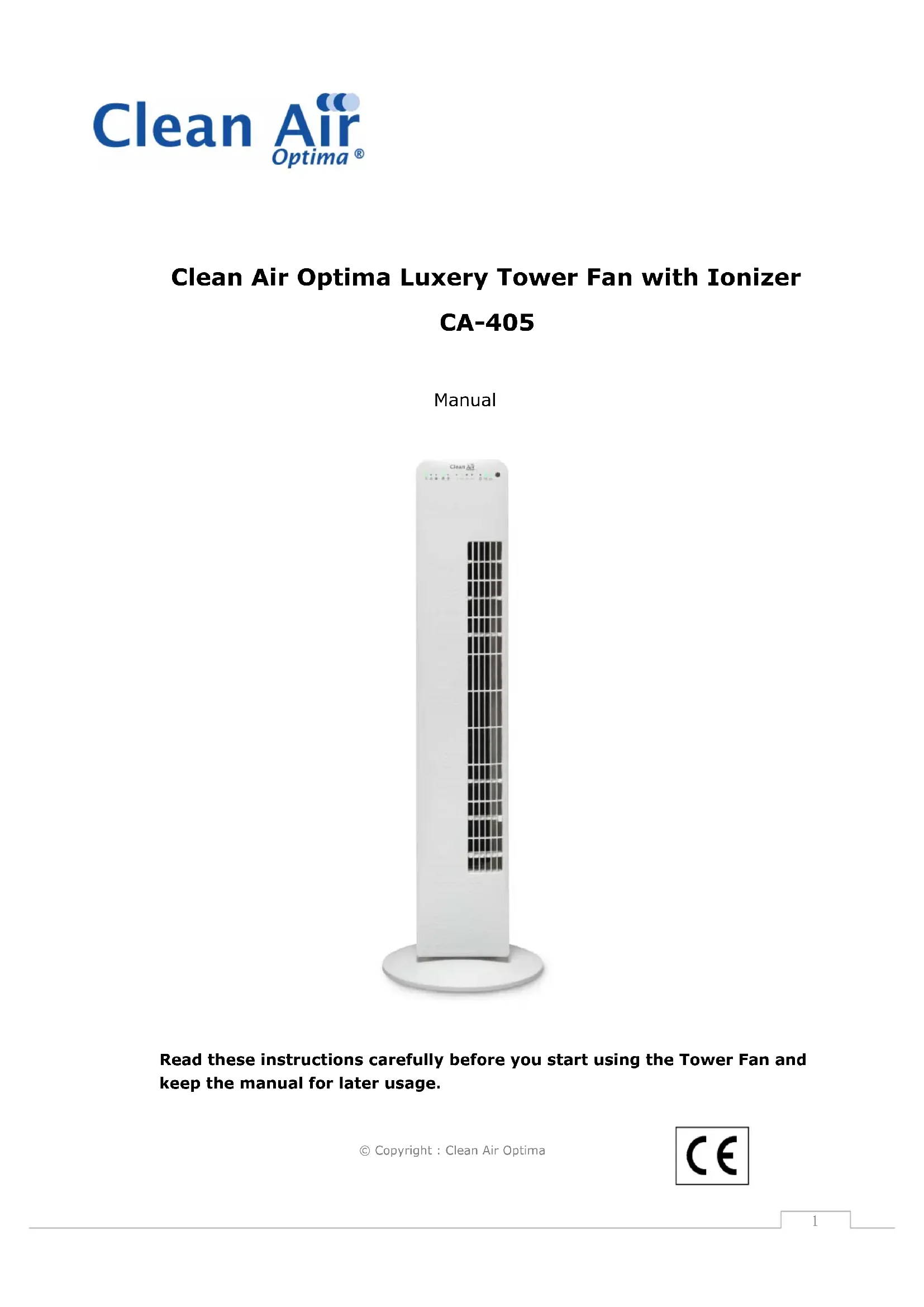 CA-405 - Ventilateur Clean Air Optima - Notice d'utilisation et mode d'emploi gratuit