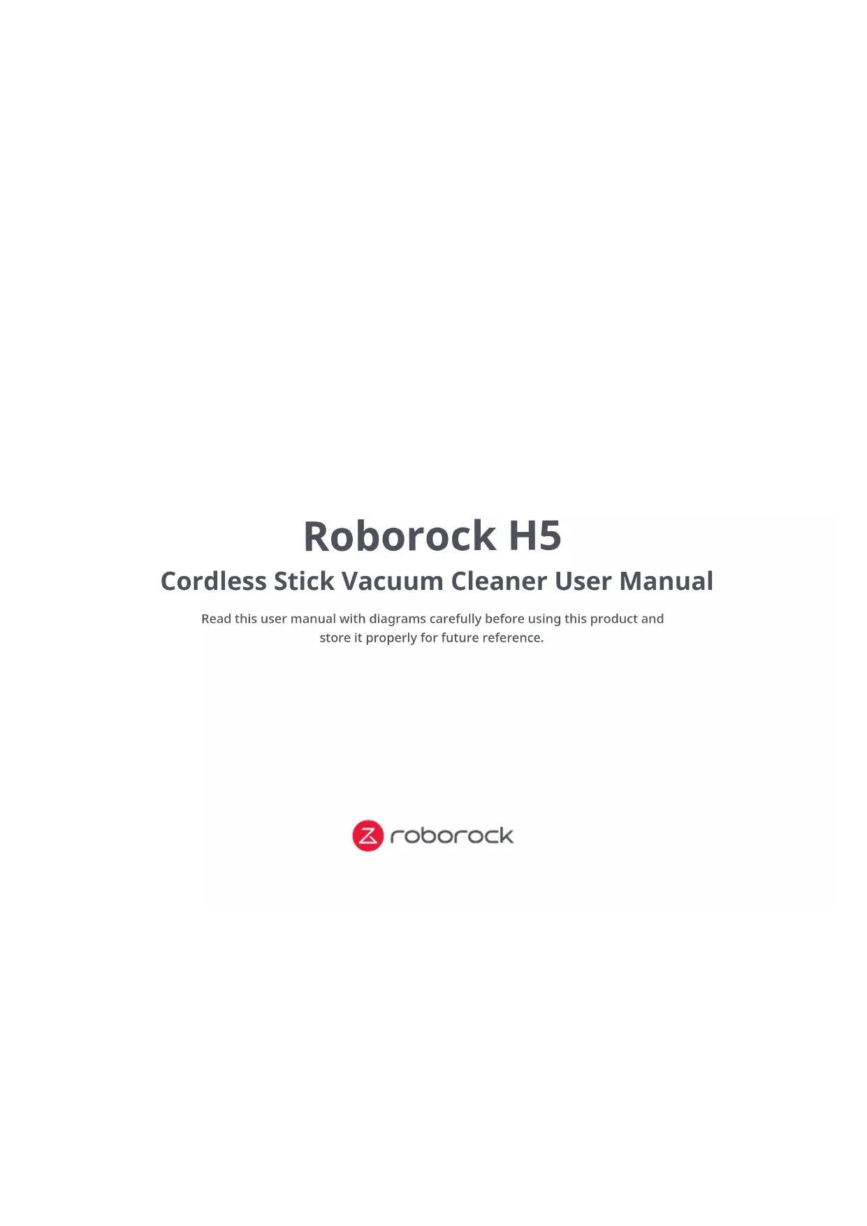If you come into contact with battery leakage, rinse thoroughly with plenty of water and seek medical attention.14 15 Consignes de sécurité 17 Explication des symboles internationaux 18 Déclaration de conformité de la FCC 20 Présentation du produit 20 Installation 21 Mode d’emploi 22 Entretien de routine 23 Paramètres de base 24 Problèmes courants 24 Dépannage 25 Description de la protection de l’environnement Roborock H5 Aspirateur balai sans fil – Manuel utilisateur Français Avant d’utiliser ce produit, lisez attentivement le présent manuel et ses illustrations et rangez-le soigneusement pour pouvoir vous y référer ultérieurement. Contenu15