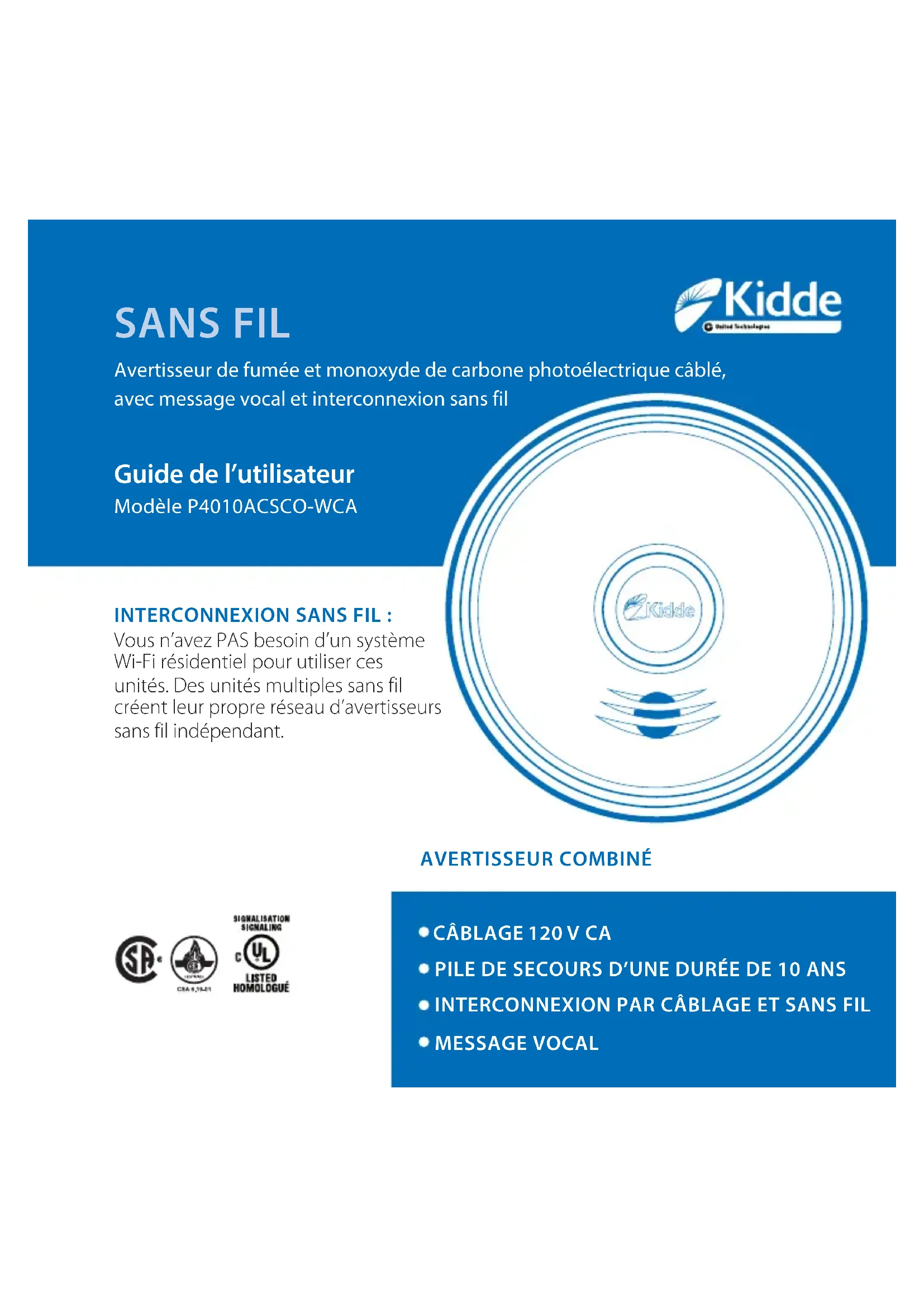 Retrouvez gratuitement la notice de l'appareil P4010ACSCO-WCA KIDDE au format PDF.