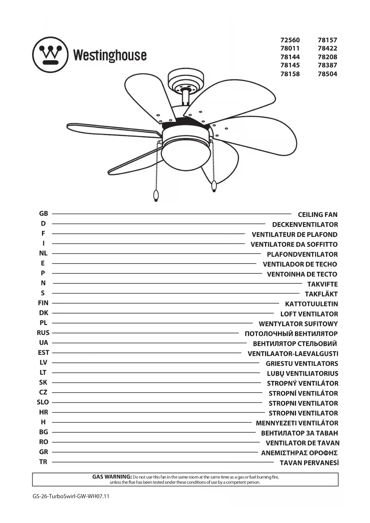 Retrouvez gratuitement la notice de l'appareil 72560 WESTINGHOUSE au format PDF.