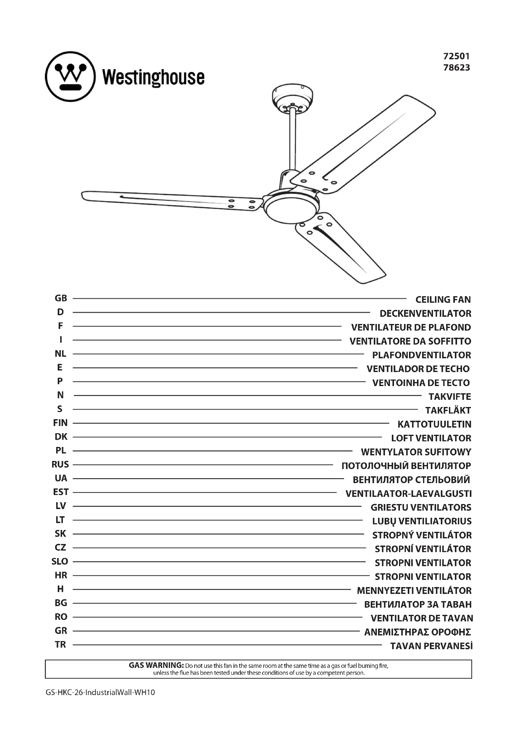 78623 - Ventilateur WESTINGHOUSE - Notice d'utilisation et mode d'emploi gratuit