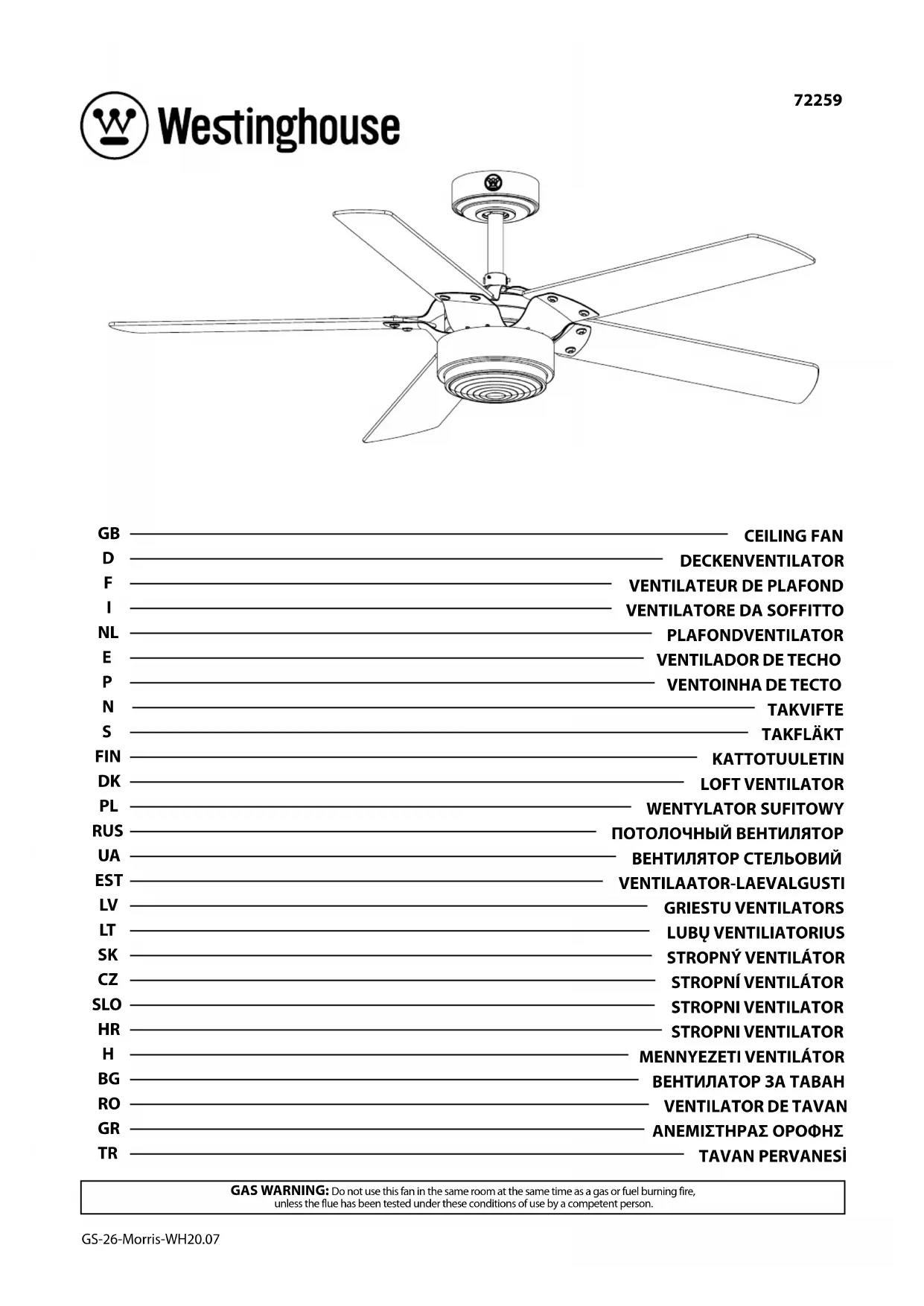 72259 - Ventilateur WESTINGHOUSE - Notice d'utilisation et mode d'emploi gratuit