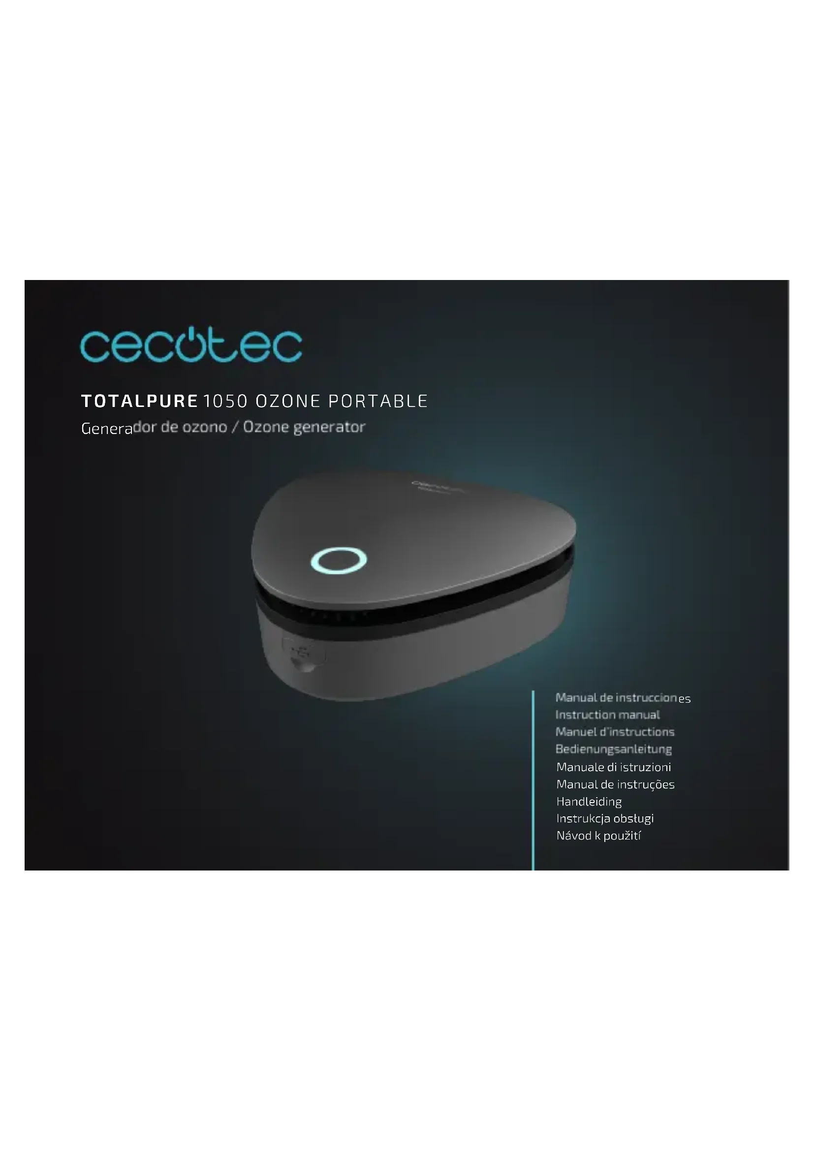 Retrouvez gratuitement la notice de l'appareil TotalPure 1050 Ozone Portable CECOTEC au format PDF.