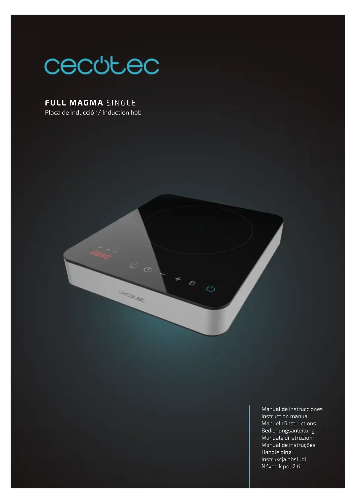 Veuillez lire les instructions suivantes avec attention avant d’utiliser l’appareil. Gardez bien ce manuel pour de futures références ou pour tout nouvel utilisateur. - Veillez à ce que tous les utilisateurs soient informés des précautions mentionnées dans ce manuel. - Cet appareil est conçu pour un usage domestique uniquement et ne doit pas être utilisé dans les bars, restaurants, fermes, hôtels, motels et bureaux. - Cet appareil n’a pas été conçu pour fonctionner à travers des minuteries ou systèmes de contrôle à distance externes. - Cet appareil peut être utilisé par des enfants de 8 ans et plus et par des personnes aux capacités physiques, mentales ou sensorielles réduites, ou sans expérience ni connaissances s'ils sont surveillés et/ou ont reçu des instructions concernant l’utilisation correcte de l’appareil et qu’ils ont bien compris les risques qu’il implique. Empêchez les enfants de jouer avec le produit. Le nettoyage et l'entretien à réaliser par l’utilisateur ne doivent pas être eectués par des enfants, sauf s'ils sont âgés de plus de 8 ans et sous surveillance. - Maintenez l’appareil et son câble hors de portée des enfants de moins de 8 ans. - AVERTISSEMENT: si la surface est cassée, éteignez l'appareil pour éviter tout risque d'électrocution. S’il vous plaît, utilisez la plaque à induction soigneusement an d’éviter tout type de danger. N’utilisez plus la plaque à induction et contactez le Service Après-Vente Ociel de Cecotec. - Les objets métalliques tels que les couteaux, les fourchettes, les cuillères et les couverts ne doivent pas être placés sur la plaque de cuisson, car ils peuvent devenir chauds.FULL MAGMA SINGLE