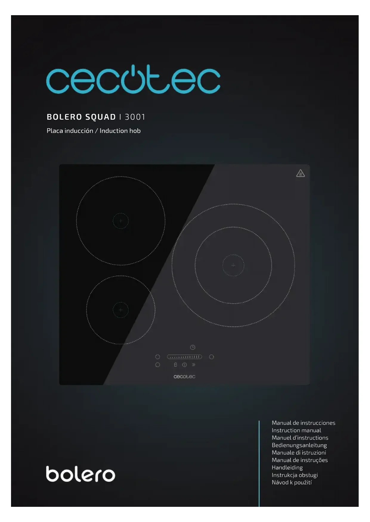 plaque de cuisson si vous souhaitez continuer à l’utiliser. La plaque à induction peut émettre un bip et s’éteindre, et les contrôles tactiles peuvent ne pas fonctionner s’il y a du liquide dessus. Veillez à sécher la zone de contrôle tactile avant d’allumer de nouveau la plaque.BOLERO SQUAD I 3001