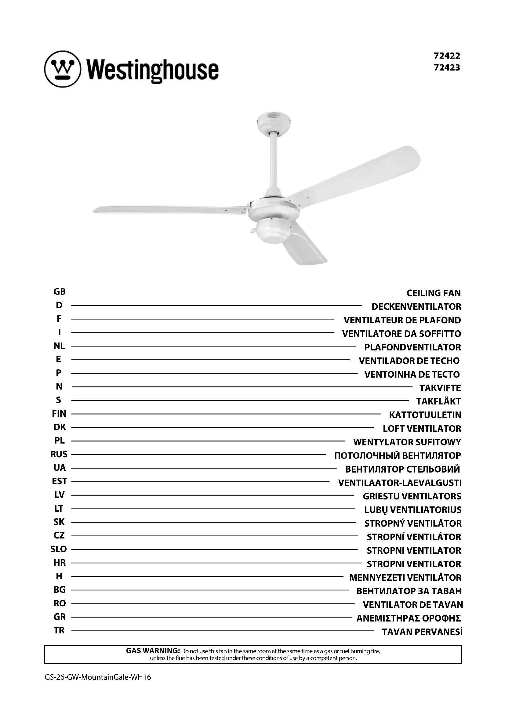 72422 - Ventilateur WESTINGHOUSE - Notice d'utilisation et mode d'emploi gratuit