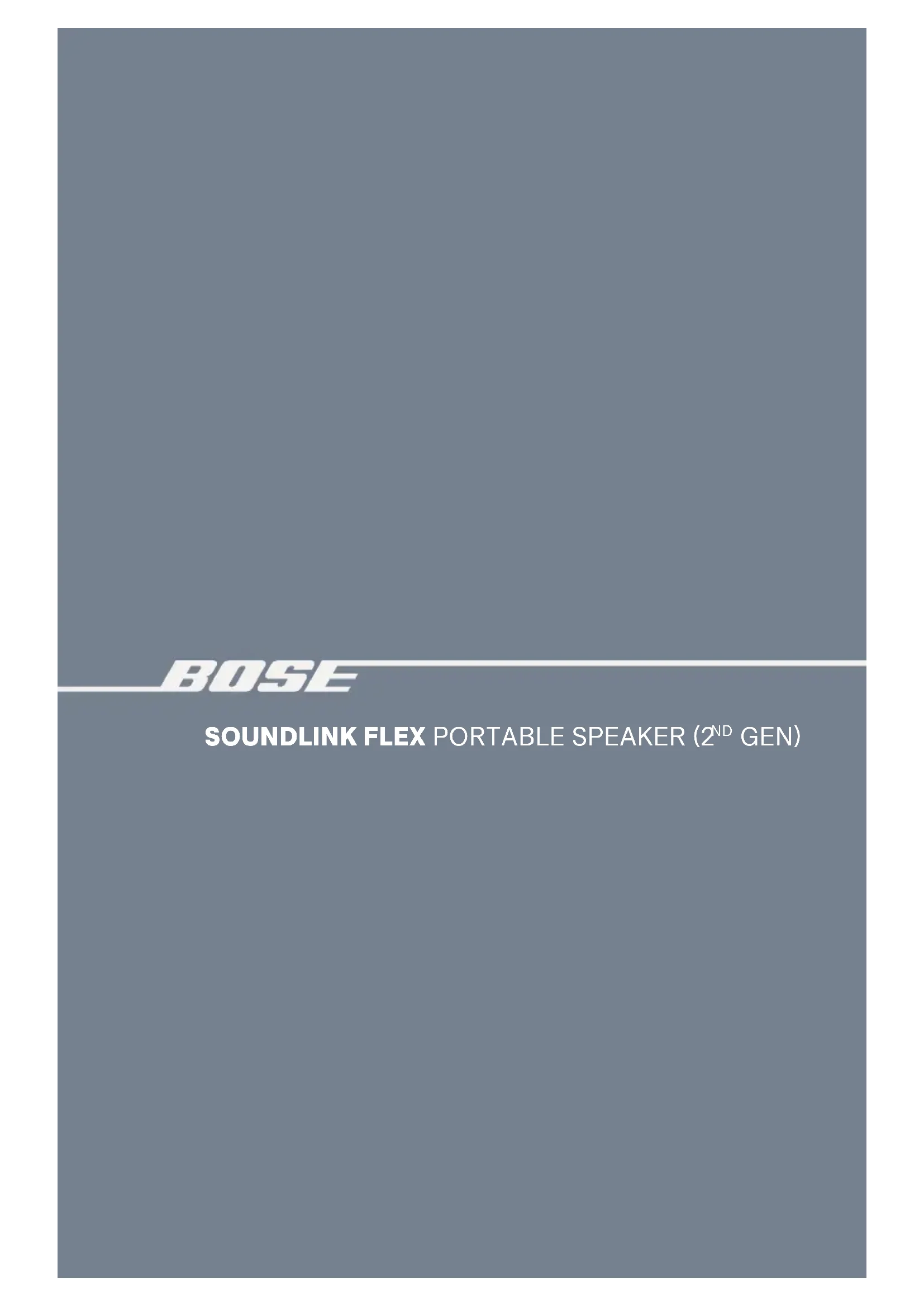Téléchargez la notice de votre Station d'acceuil au format PDF gratuitement ! Retrouvez votre notice SoundLink Flex 2nd Gen - BOSE et reprennez votre appareil électronique en main. Sur cette page sont publiés tous les documents nécessaires à l'utilisation de votre appareil SoundLink Flex 2nd Gen de la marque BOSE.