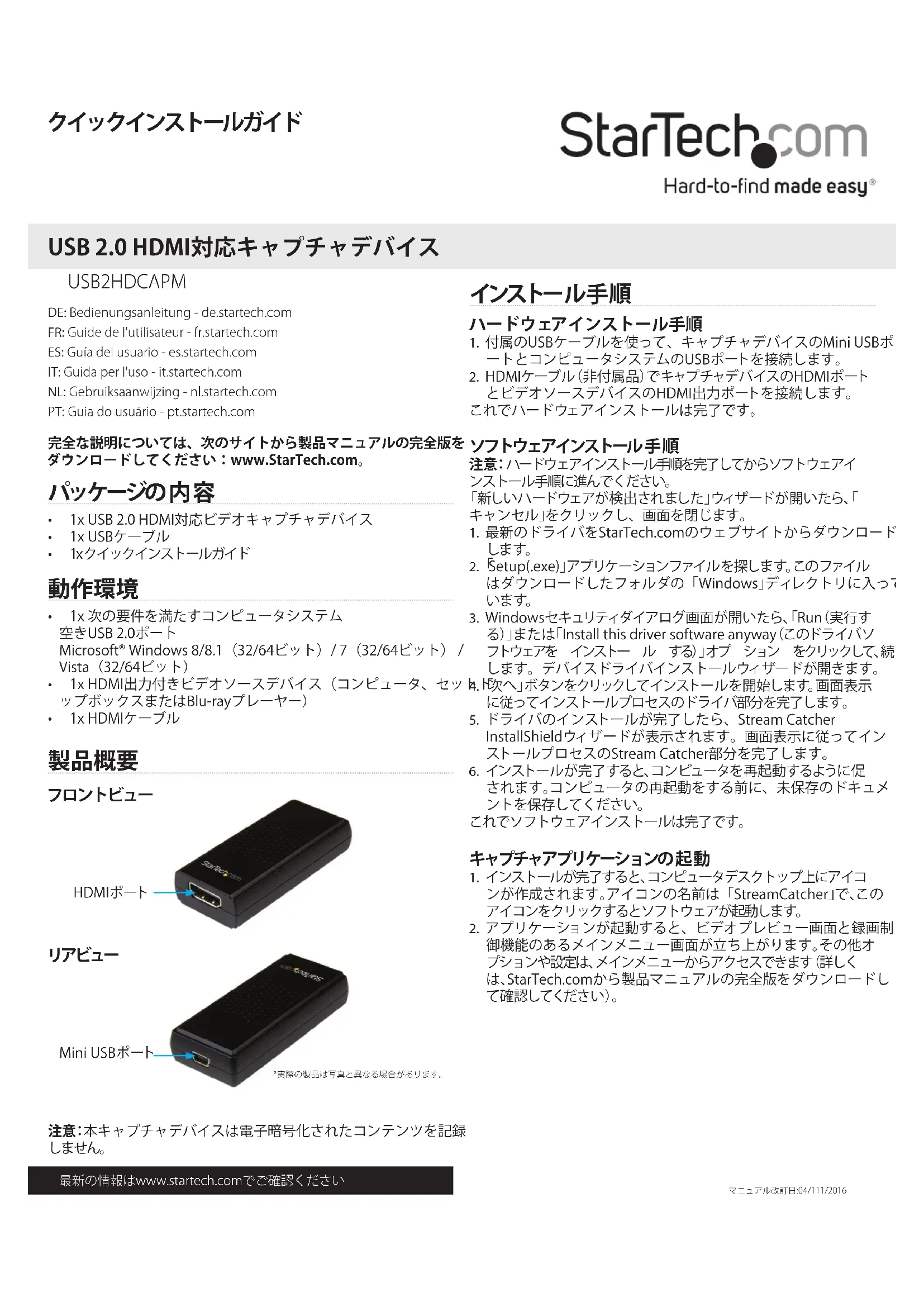 Retrouvez gratuitement la notice de l'appareil USB2HDCAPM StarTech.com au format PDF.