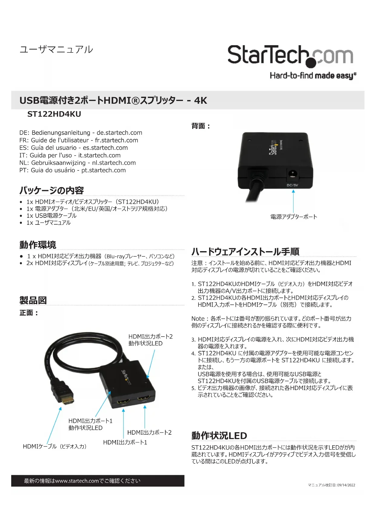 ST122HD4KU - Répartiteur StarTech.com - Notice d'utilisation et mode d'emploi gratuit