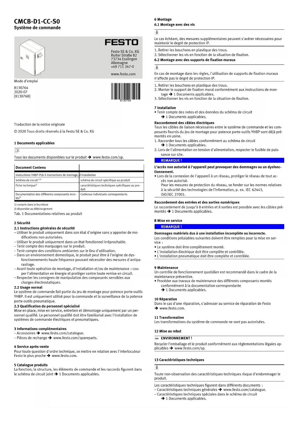 Retrouvez gratuitement la notice de l'appareil CMCB-D1-CC-S0 Festo au format PDF.