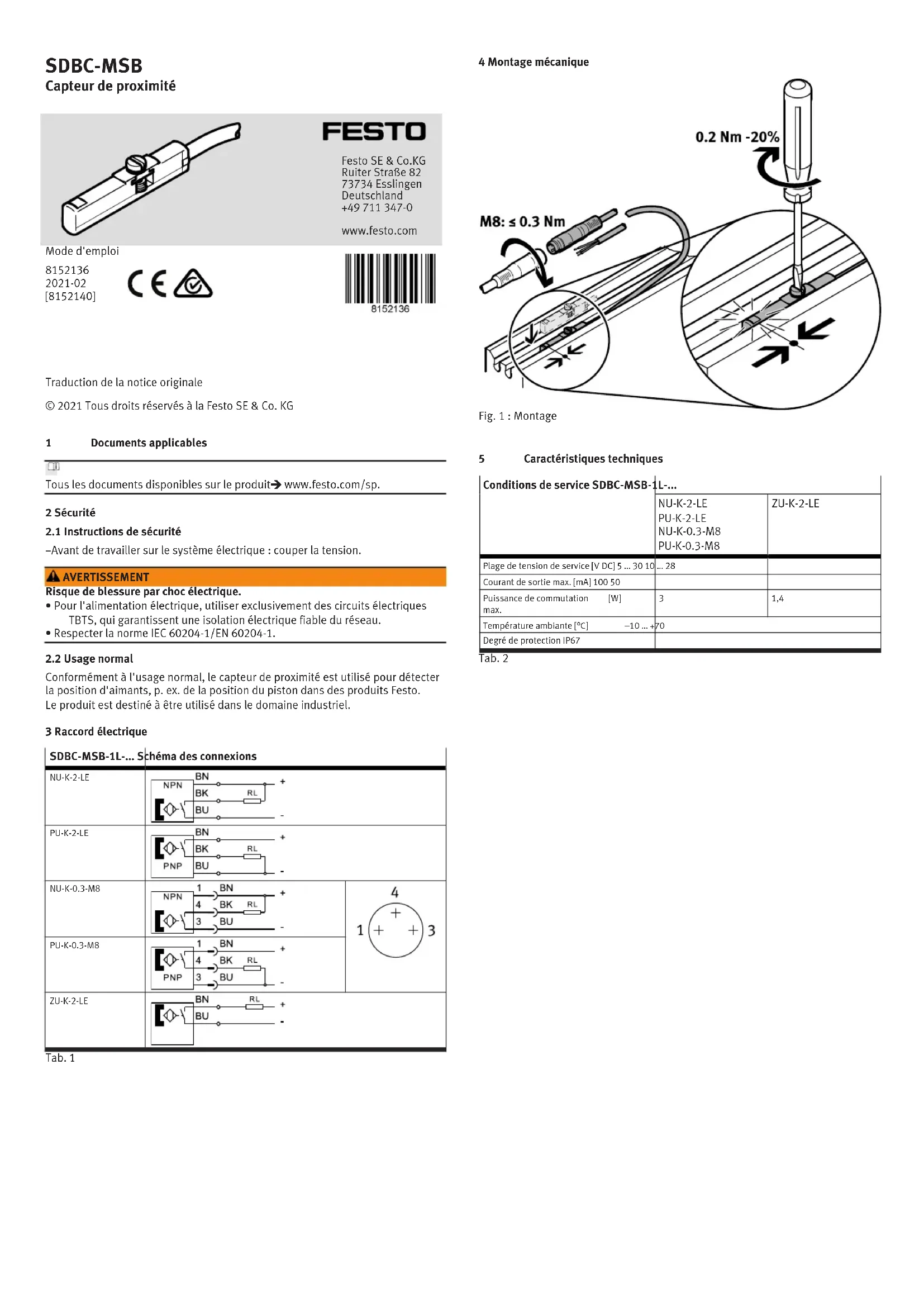 SDBC-MSB-1L-ZU-K-2-LE - Capteur Festo - Notice d'utilisation et mode d'emploi gratuit