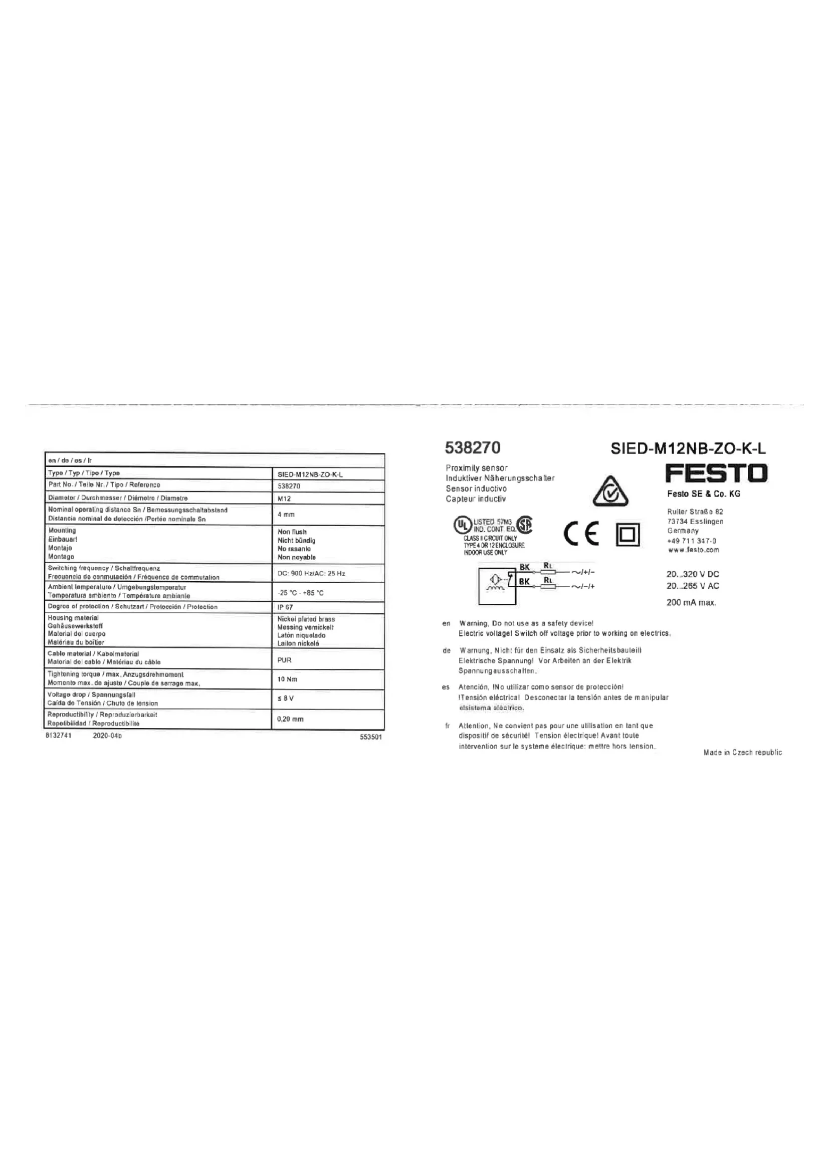 SIED-M12NB-ZO-K-L - Détecteur de mouvements Festo - Notice d'utilisation et mode d'emploi gratuit