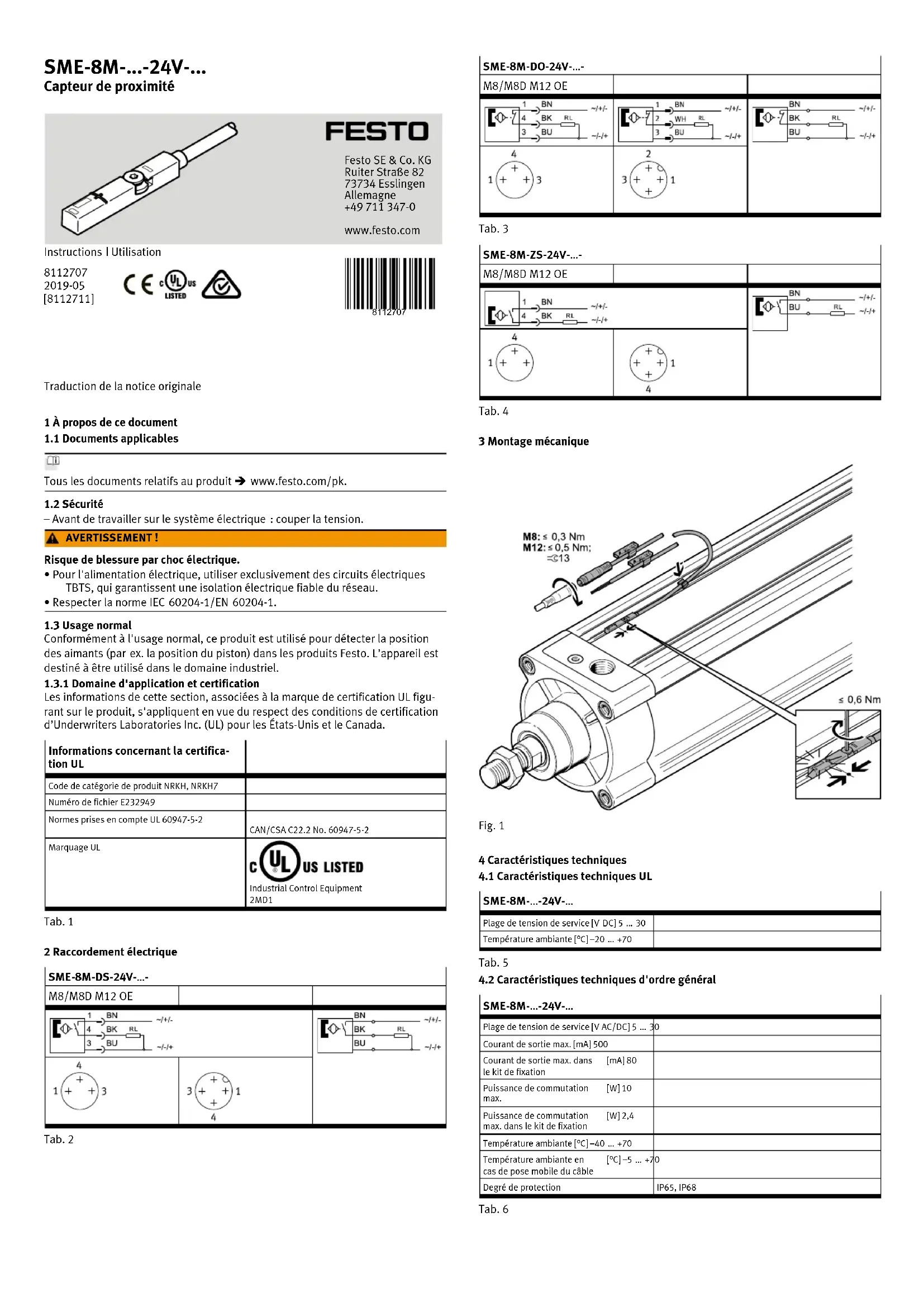 Retrouvez gratuitement la notice de l'appareil SME-8M-ZS-24V-K-2 5-OE Festo au format PDF.