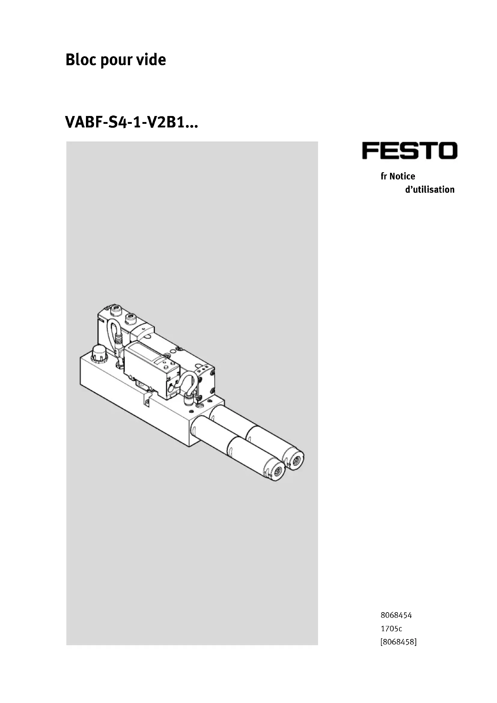 – Énumérations générales è Résultat d'une manutention/Renvois à des informations complémentairesVABF-S4-1-V2B1... Festo – VABF-S4-1-V2B1... – 1705c Français 3 Français – Bloc pour vide VABF-S4-1-V2B1... Table des matières 1 Description du produit 4.....................................................