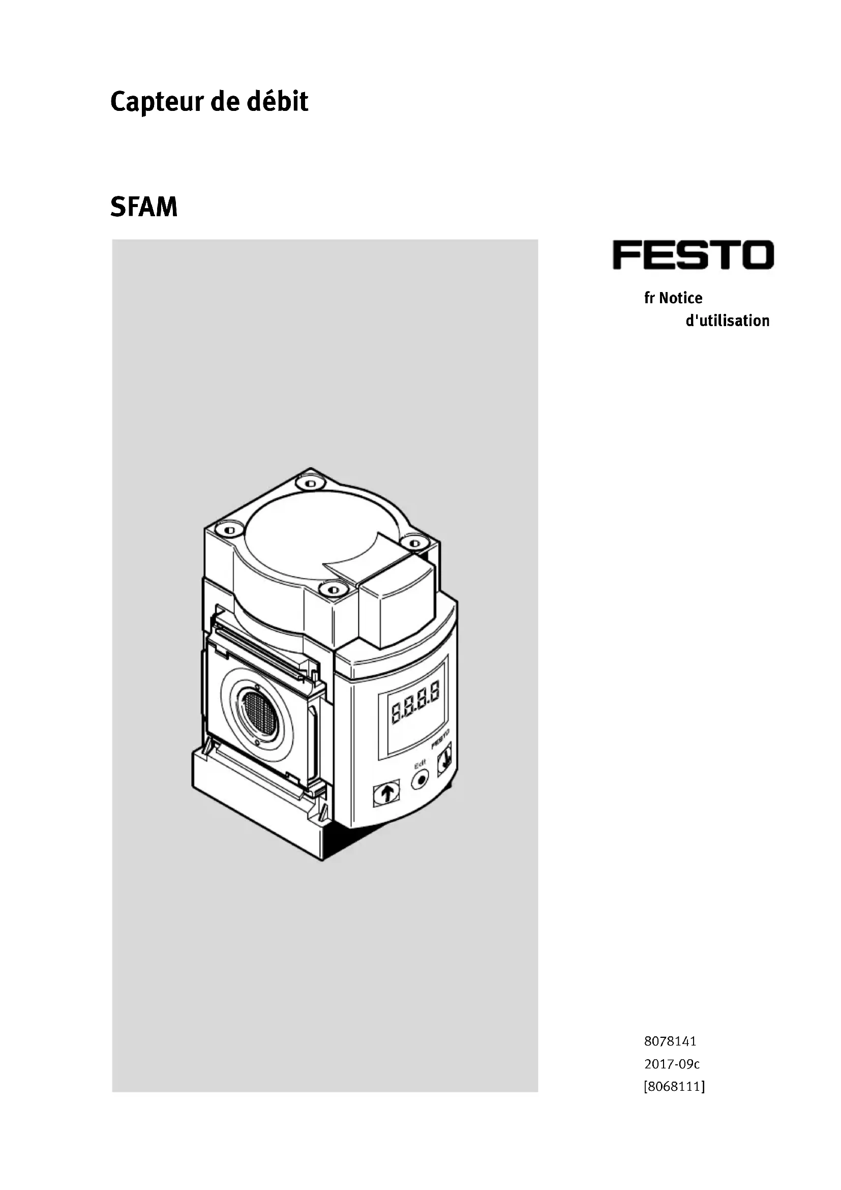 2017-09c [8068111] Capteur de débit SFAMSFAM 2 Festo – SFAM – 2017-09c Notice originale SFAM-FR Identification des dangers et remarques utiles pour les éviter : Danger Danger imminent pouvant entraîner la mort ou des blessures graves Avertissement Dangers pouvant entraîner la mort ou des blessures graves Attention Dangers pouvant entraîner des blessures légères Autres symboles : Nota Dégâts matériels ou dysfonctionnement Recommandation, conseil, renvoi à d’autres documents Accessoires nécessaires ou utiles Informations pour une utilisation écologique Identifications de texte : Activités qui peuvent être effectuées dans n’importe quel ordre