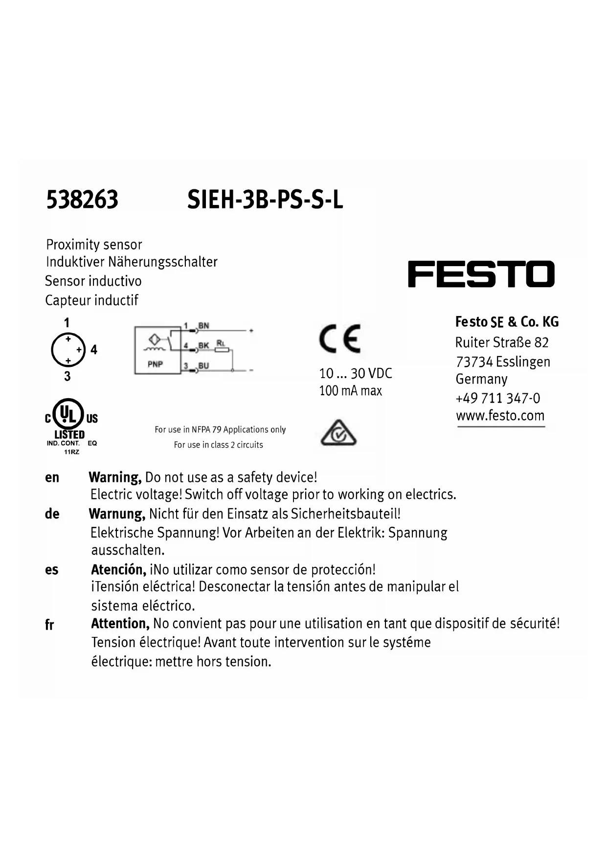 SIEH-3B-PS-S-L - Capteur Festo - Notice d'utilisation et mode d'emploi gratuit