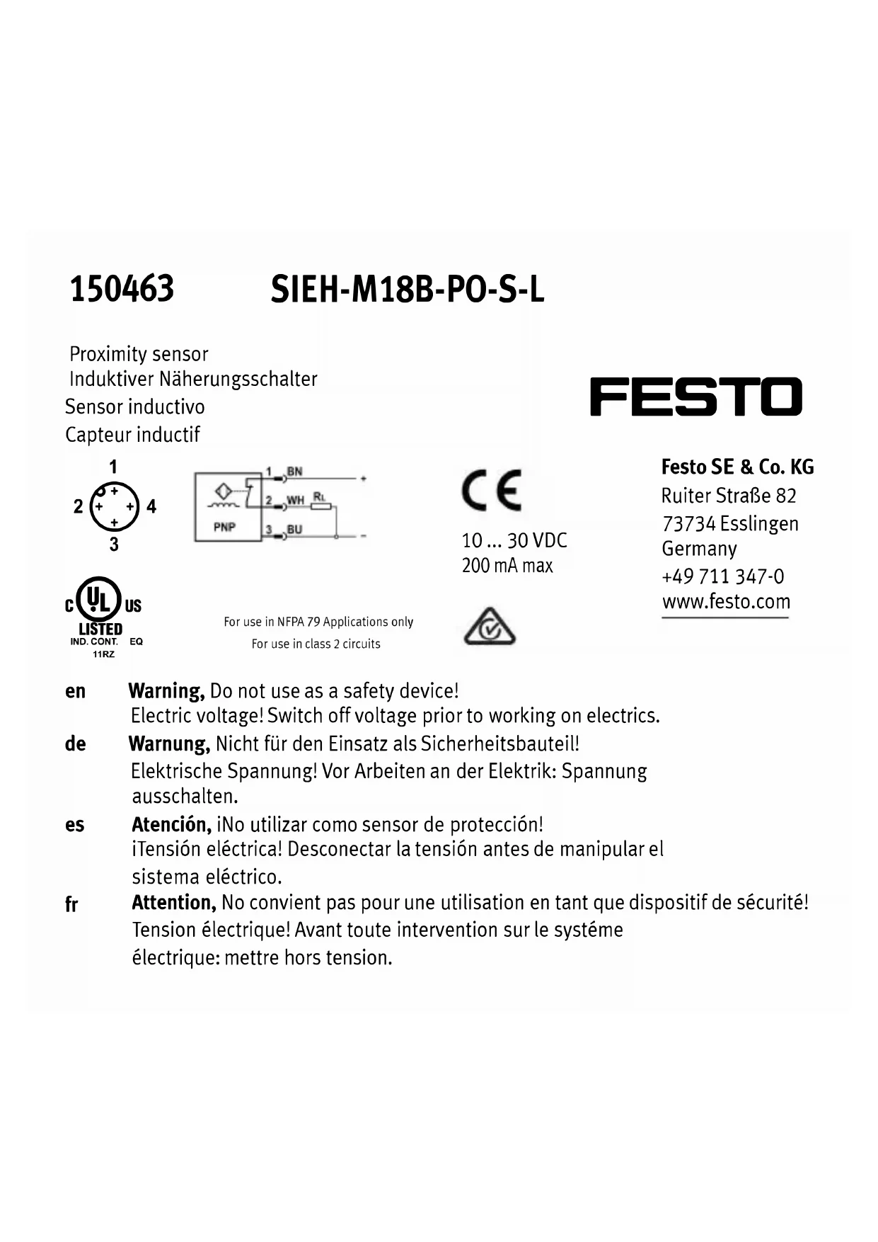SIEH-M18B-PO-S-L - Capteur Festo - Notice d'utilisation et mode d'emploi gratuit