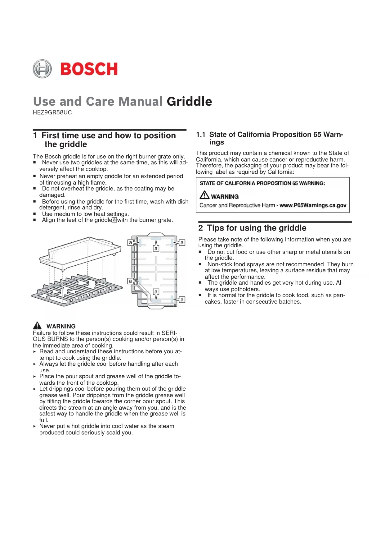 HEZ9GR58UC - Plaque de grill BOSCH - Notice d'utilisation et mode d'emploi gratuit