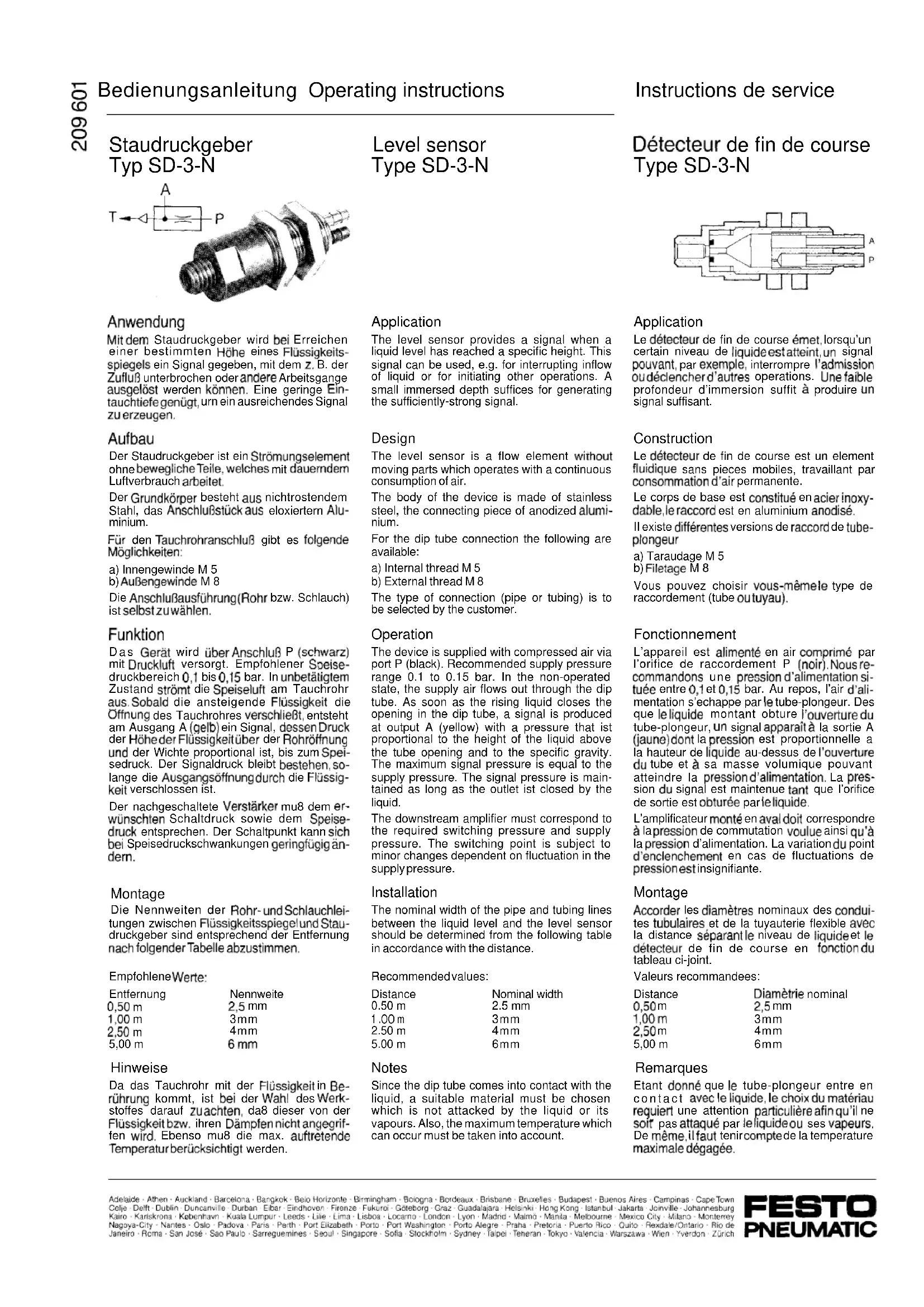 Retrouvez gratuitement la notice de l'appareil SD-3-N Festo au format PDF.