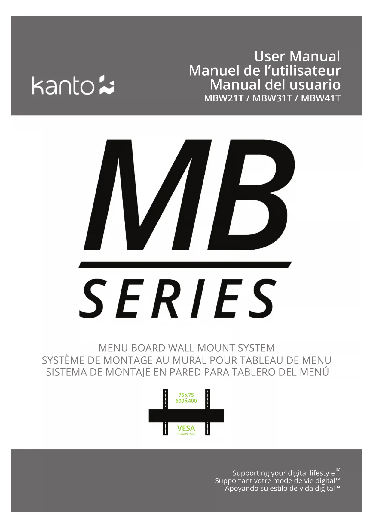MBW21PT - Support écran plat Kanto - Notice d'utilisation et mode d'emploi gratuit