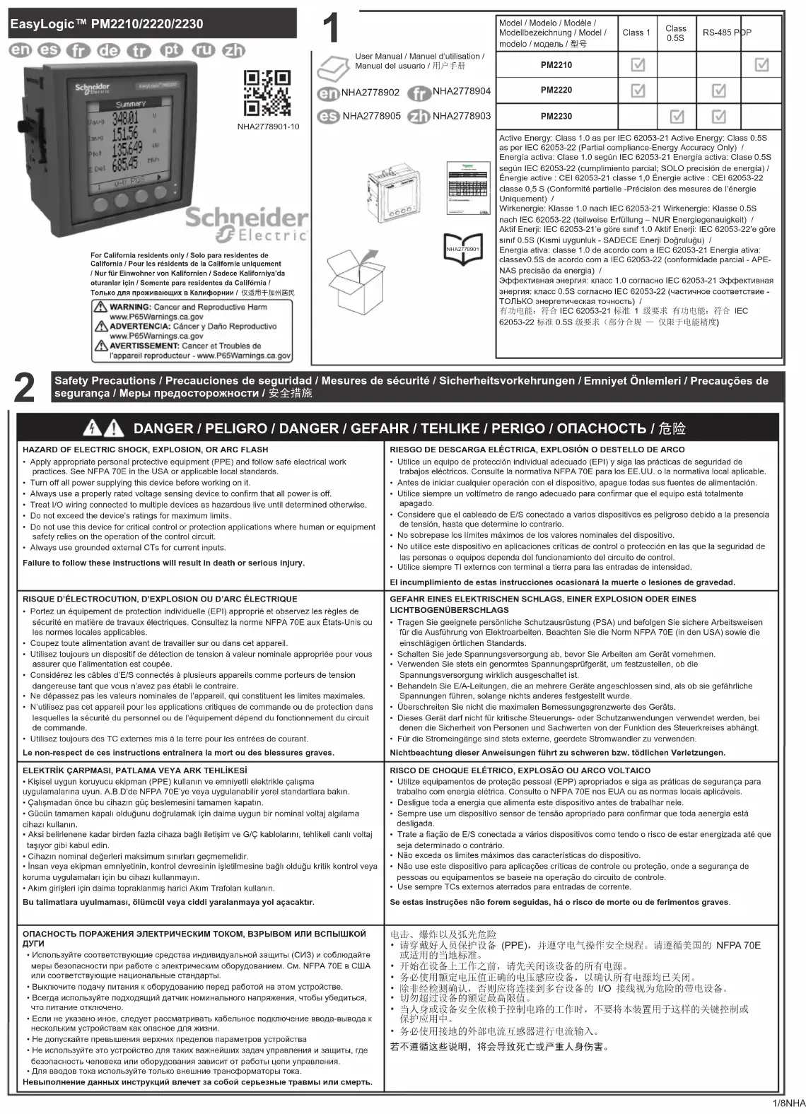 Retrouvez gratuitement la notice de l'appareil EasyLogic PM2230 SCHNEIDER au format PDF.