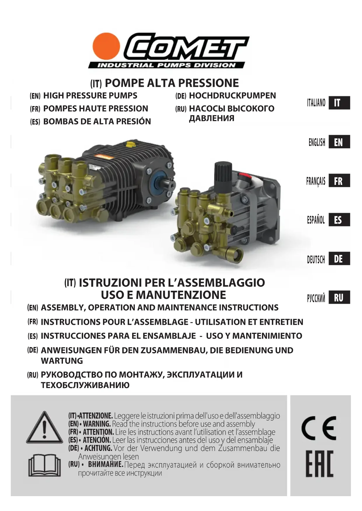 ZW HYDR - Pompe Comet - Notice d'utilisation et mode d'emploi gratuit