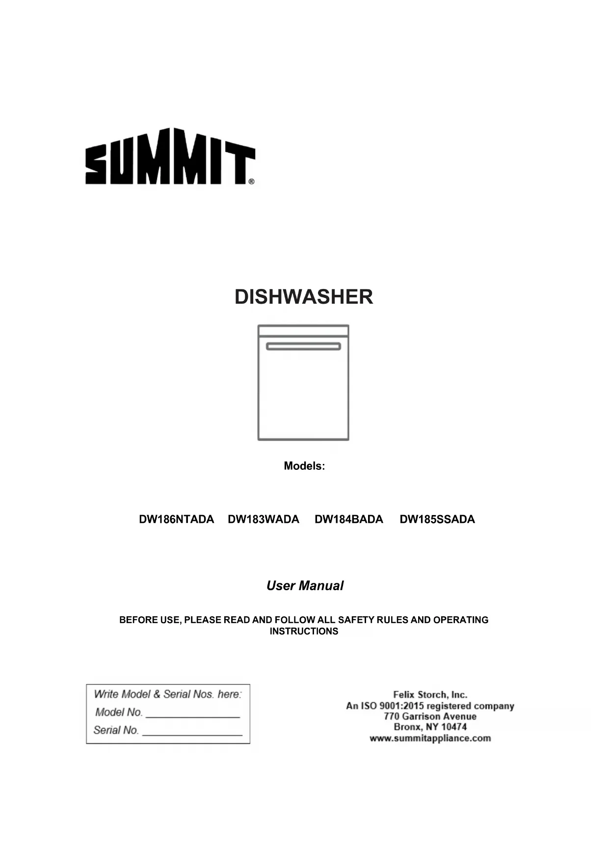 Retrouvez gratuitement la notice de l'appareil DW186NTADA Summit au format PDF.