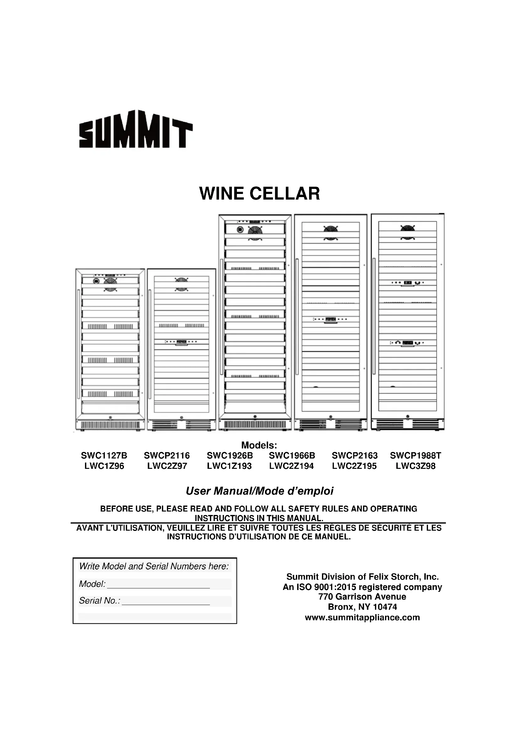 SWCP1988T - Cave à vin Summit - Notice d'utilisation et mode d'emploi gratuit