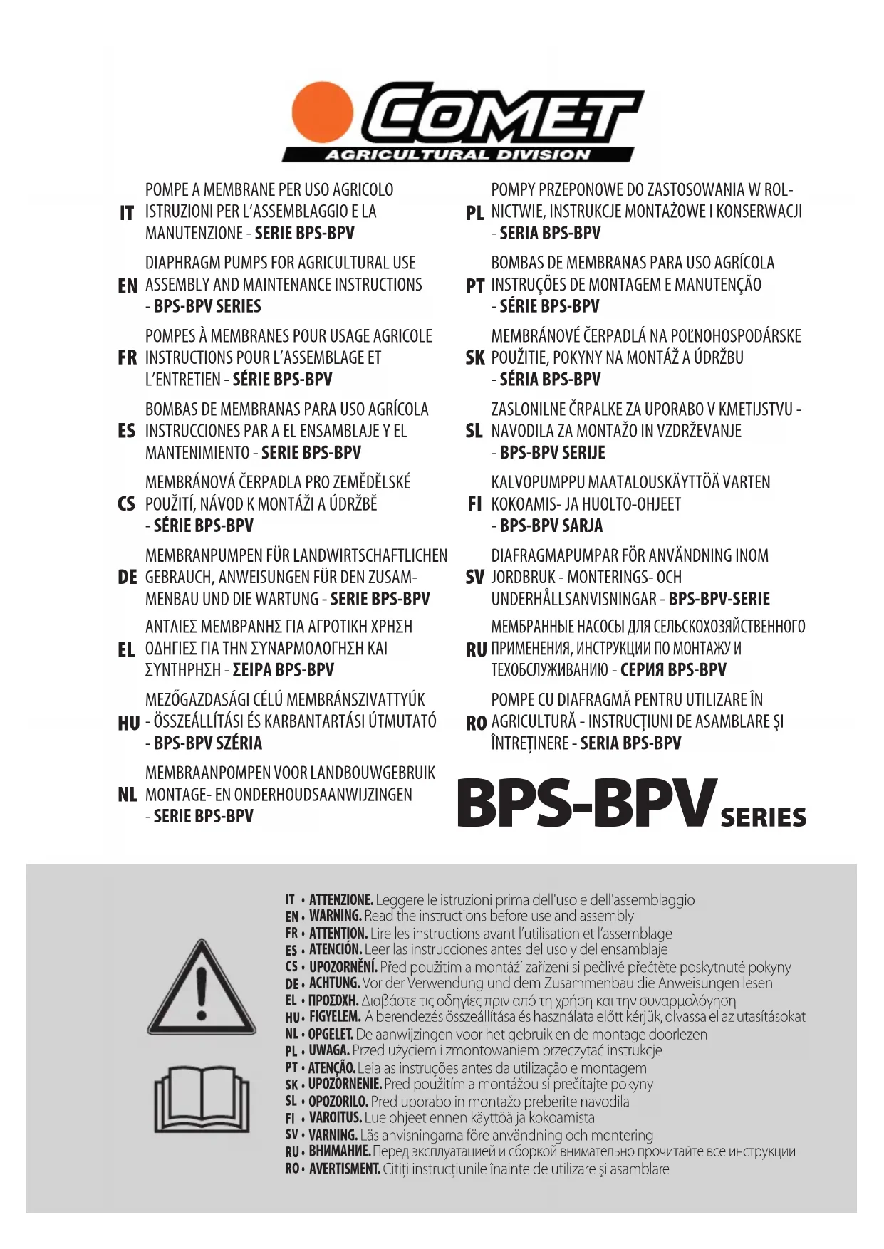 BPV 500 - Pompe Comet - Notice d'utilisation et mode d'emploi gratuit