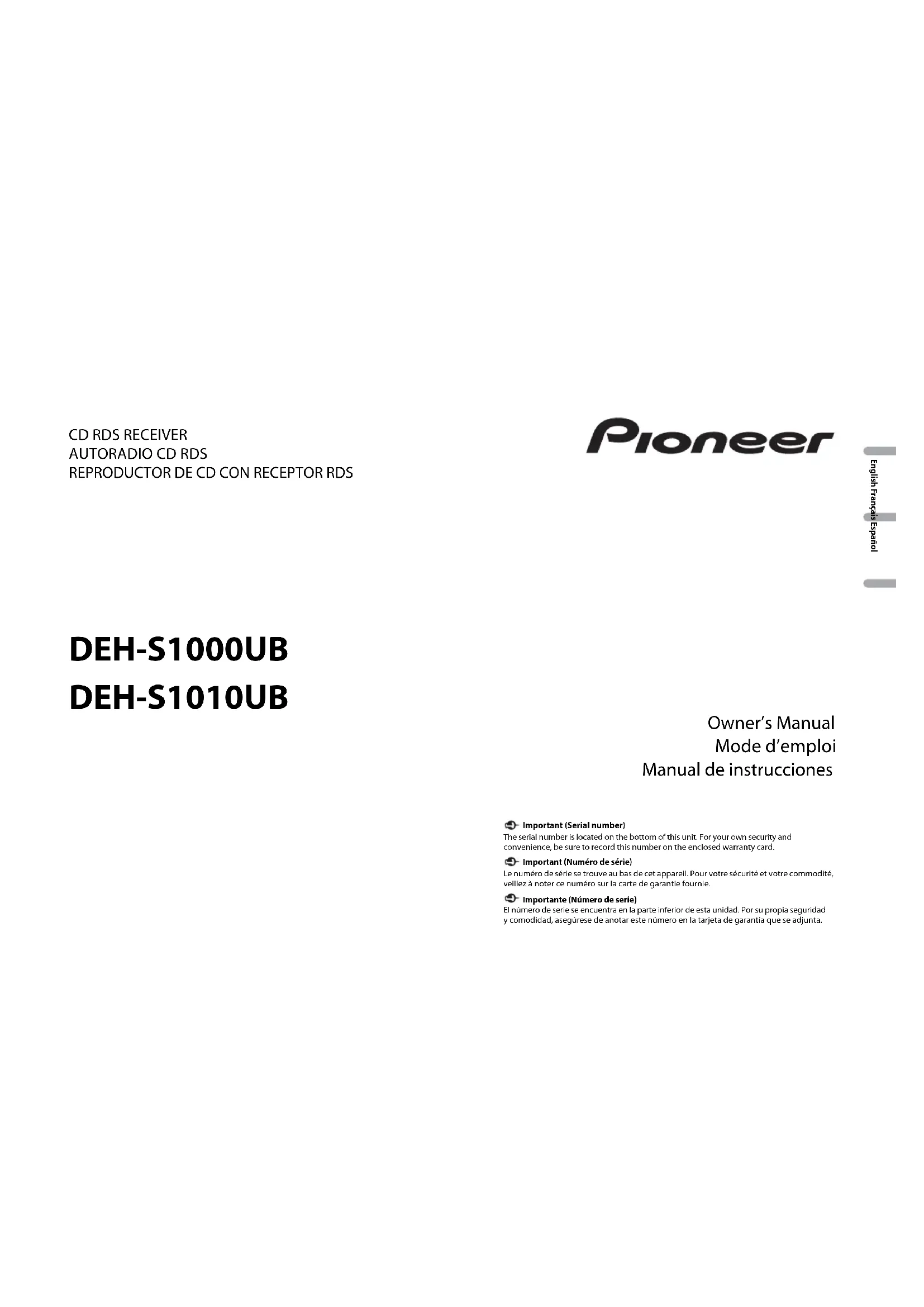 Retrouvez gratuitement la notice de l'appareil DEH-S1000UB PIONEER au format PDF.