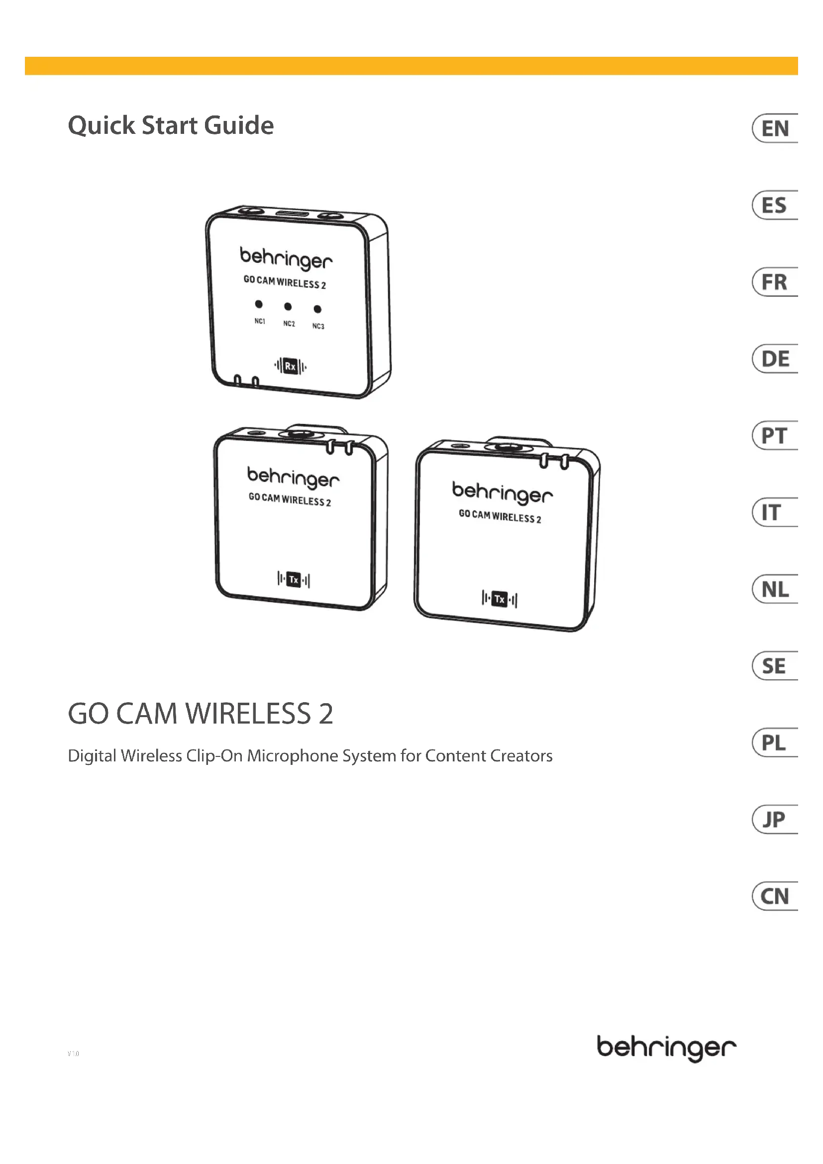 Go Cam Wireless 2 - Microphone BEHRINGER - Notice d'utilisation et mode d'emploi gratuit