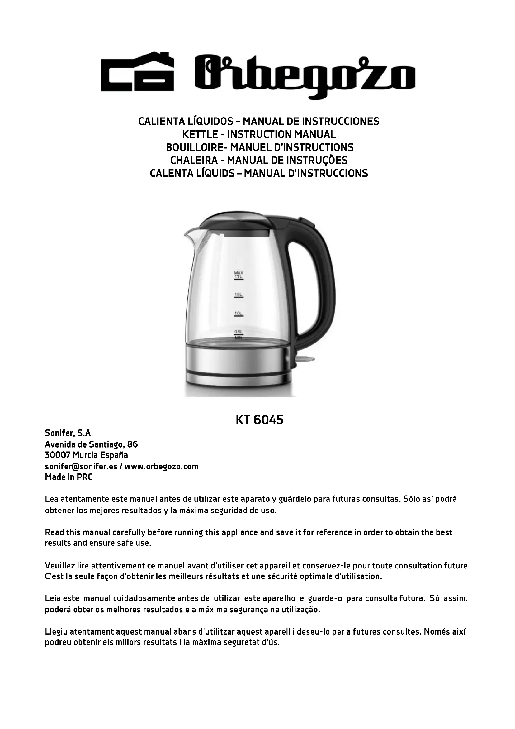 KT 6045 - Bouilloire Orbegozo - Notice d'utilisation et mode d'emploi gratuit