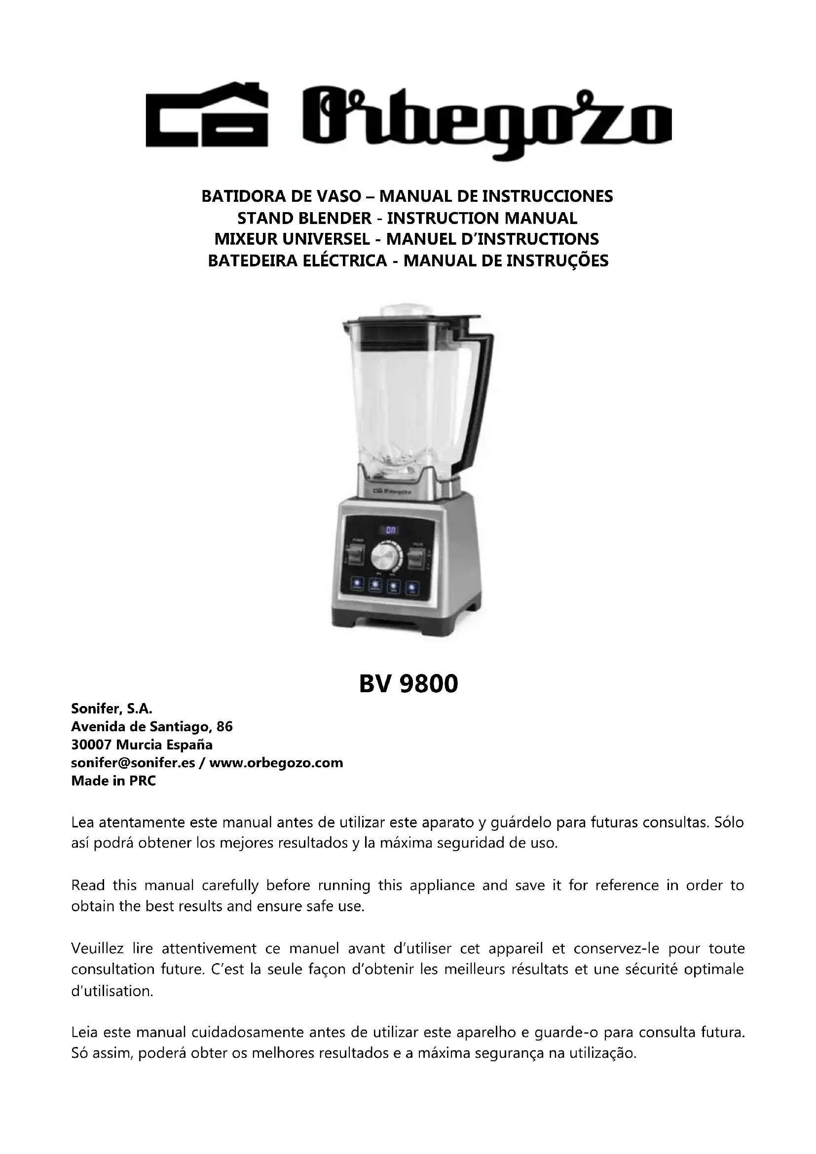 BV 9800 - Blender Orbegozo - Notice d'utilisation et mode d'emploi gratuit