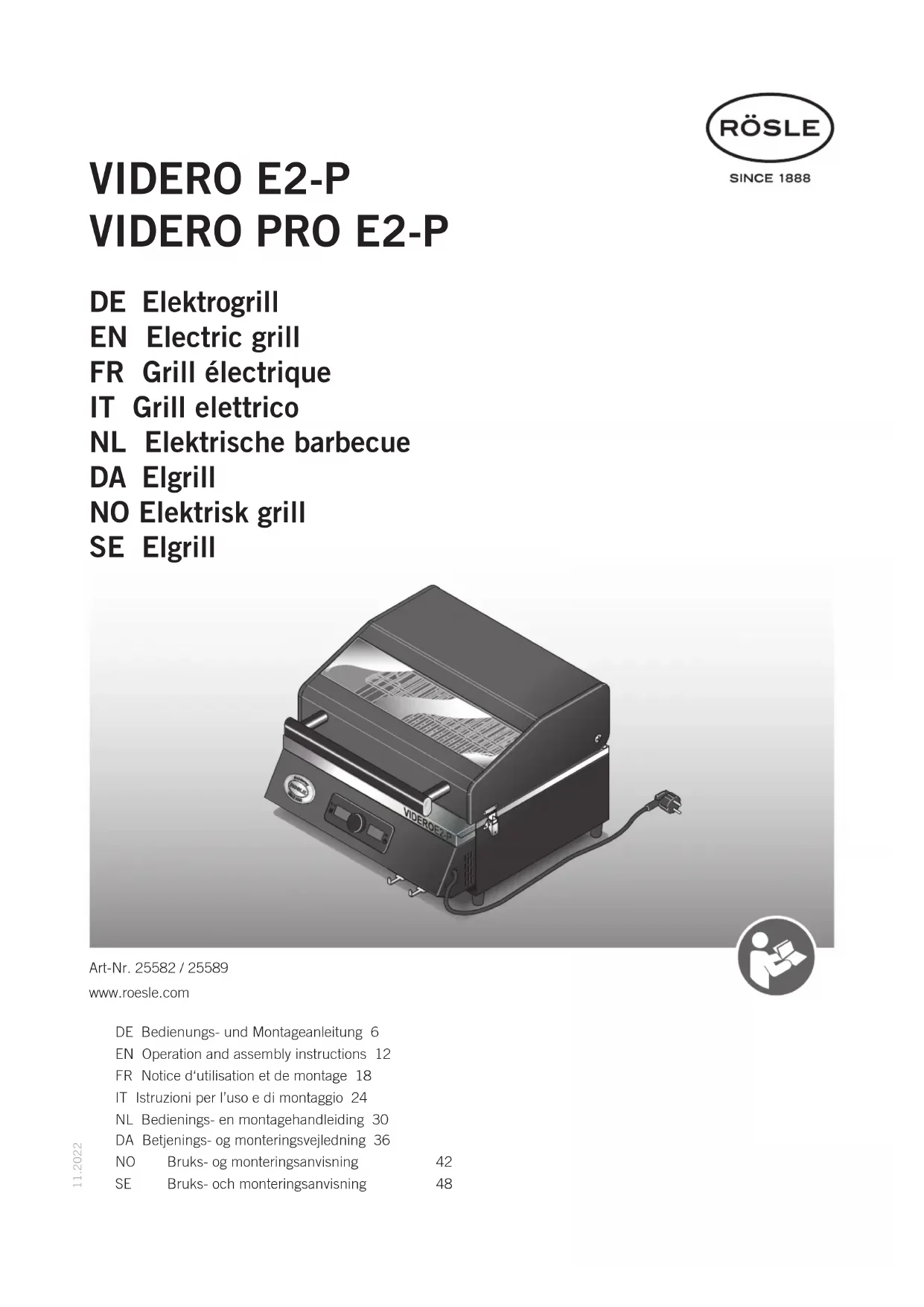Videro E2-P - Plaque de grill Roesle - Notice d'utilisation et mode d'emploi gratuit