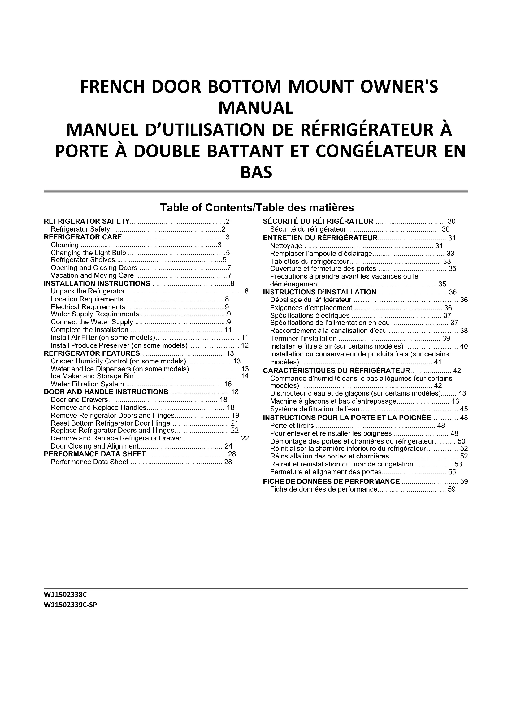 NSF est une marque déposée de NSF International. 60NOTES 61NOTES 62NOTES 63W11502338C W11502339C-SP ©2022 All rights reserved. Used under license in Canada. Tous droits réservés. Utilisé sous licence au Canada. 02/22
