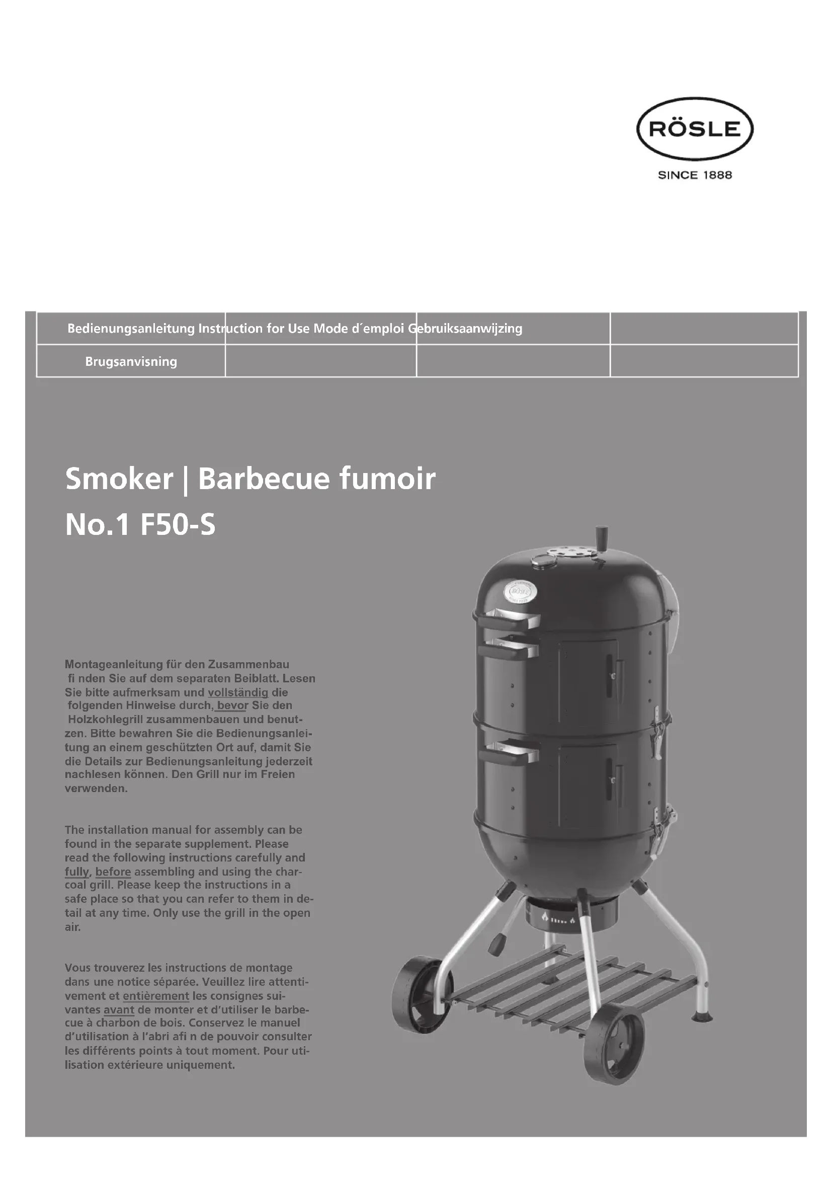 Smoker No.1 F50-S - Barbecue Roesle - Notice d'utilisation et mode d'emploi gratuit