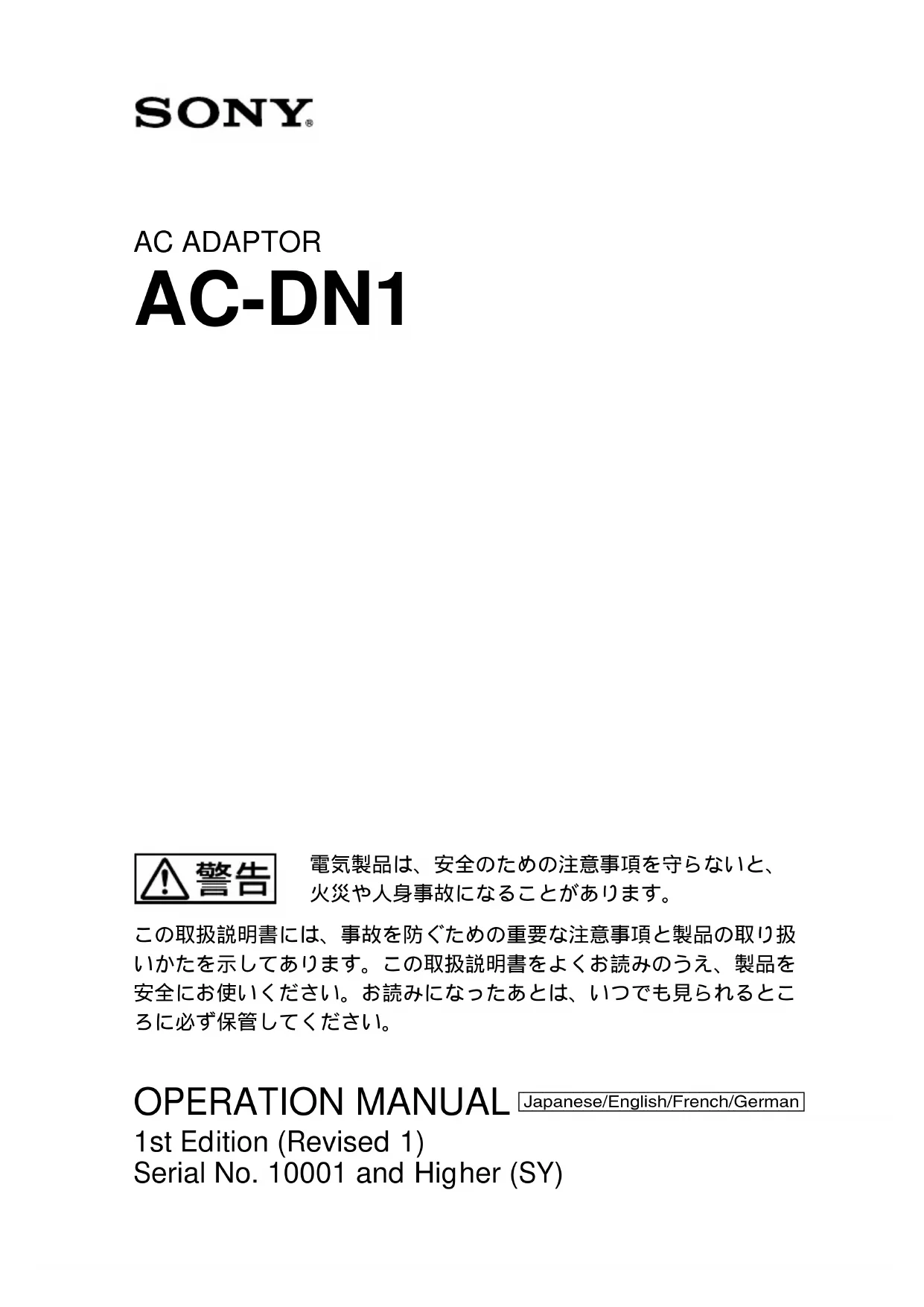 Retrouvez gratuitement la notice de l'appareil AC-DN1 SONY au format PDF.