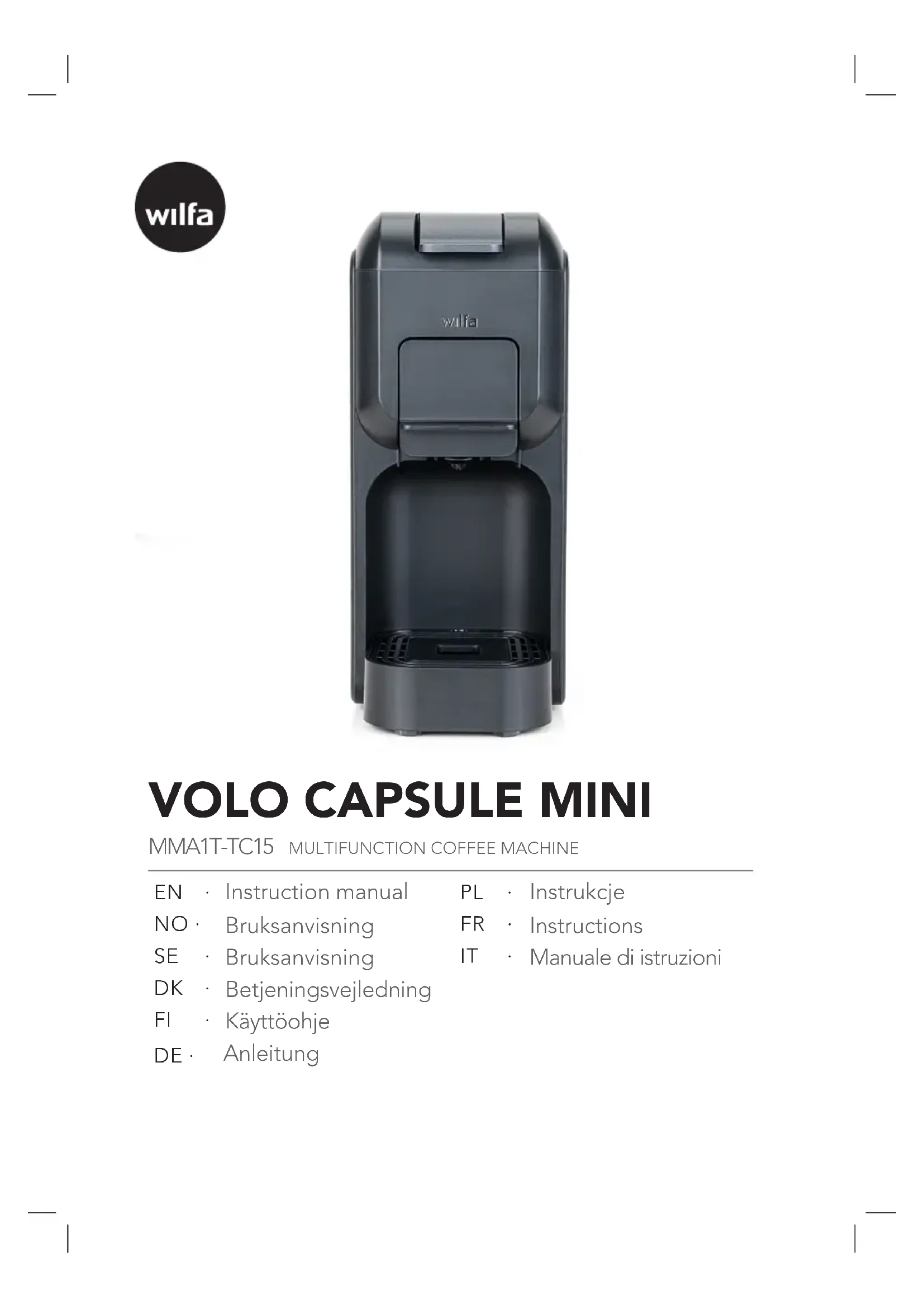 Volo Capsule Mini MMA1T-TC15 - Machine à café WILFA - Notice d'utilisation et mode d'emploi gratuit